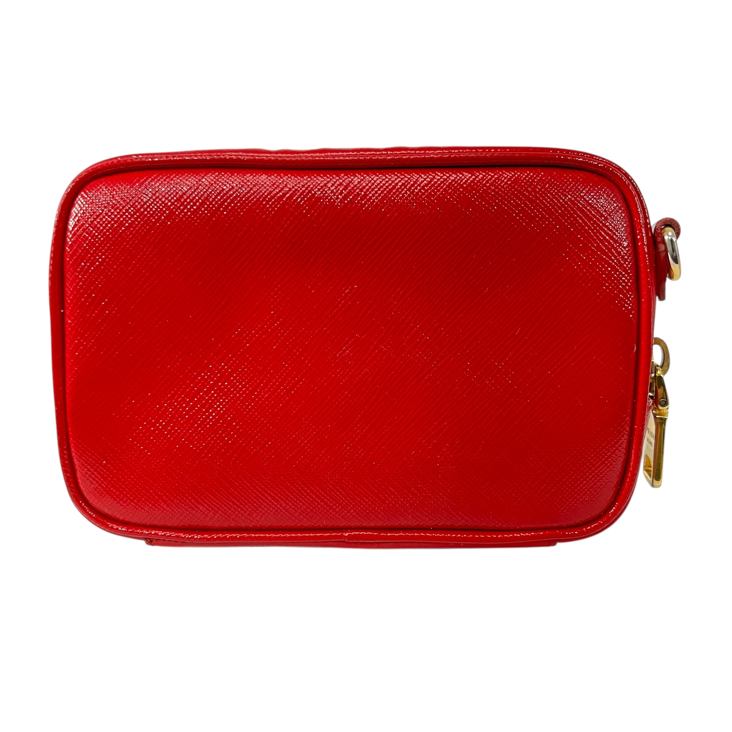 メッキにスレ、ファスナー付近にシワ、黒ずみ、ショルダーストラップにヒビがあります。