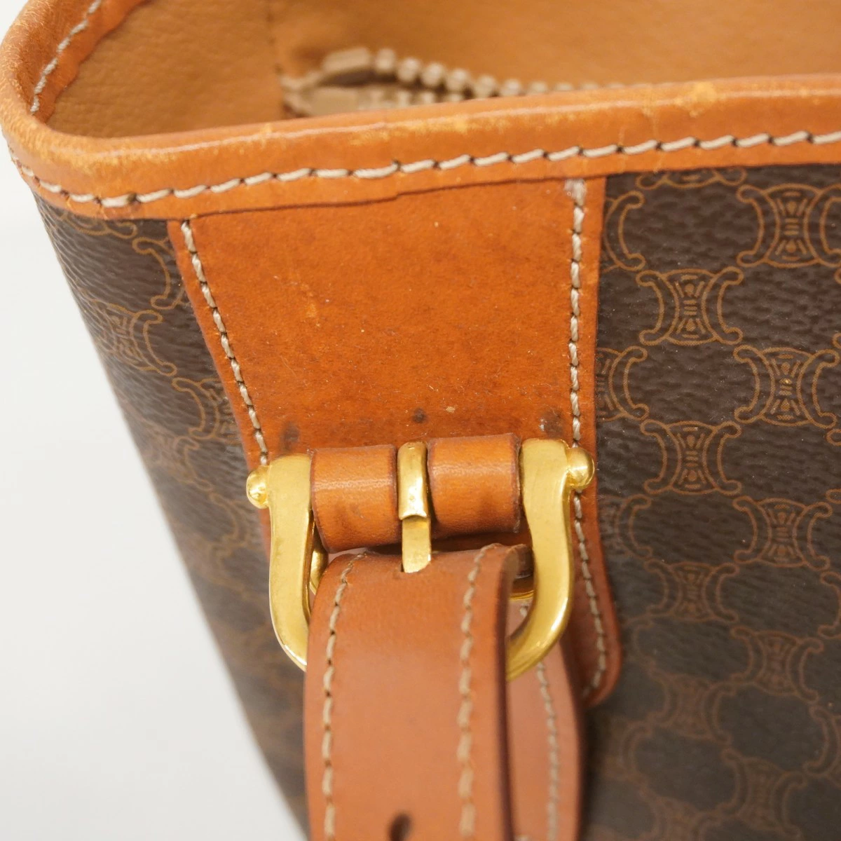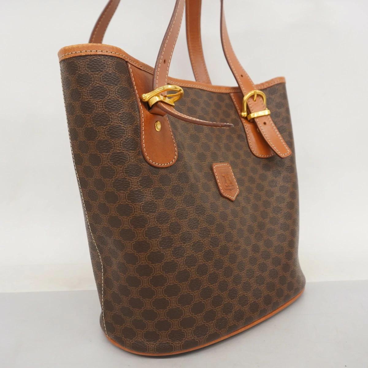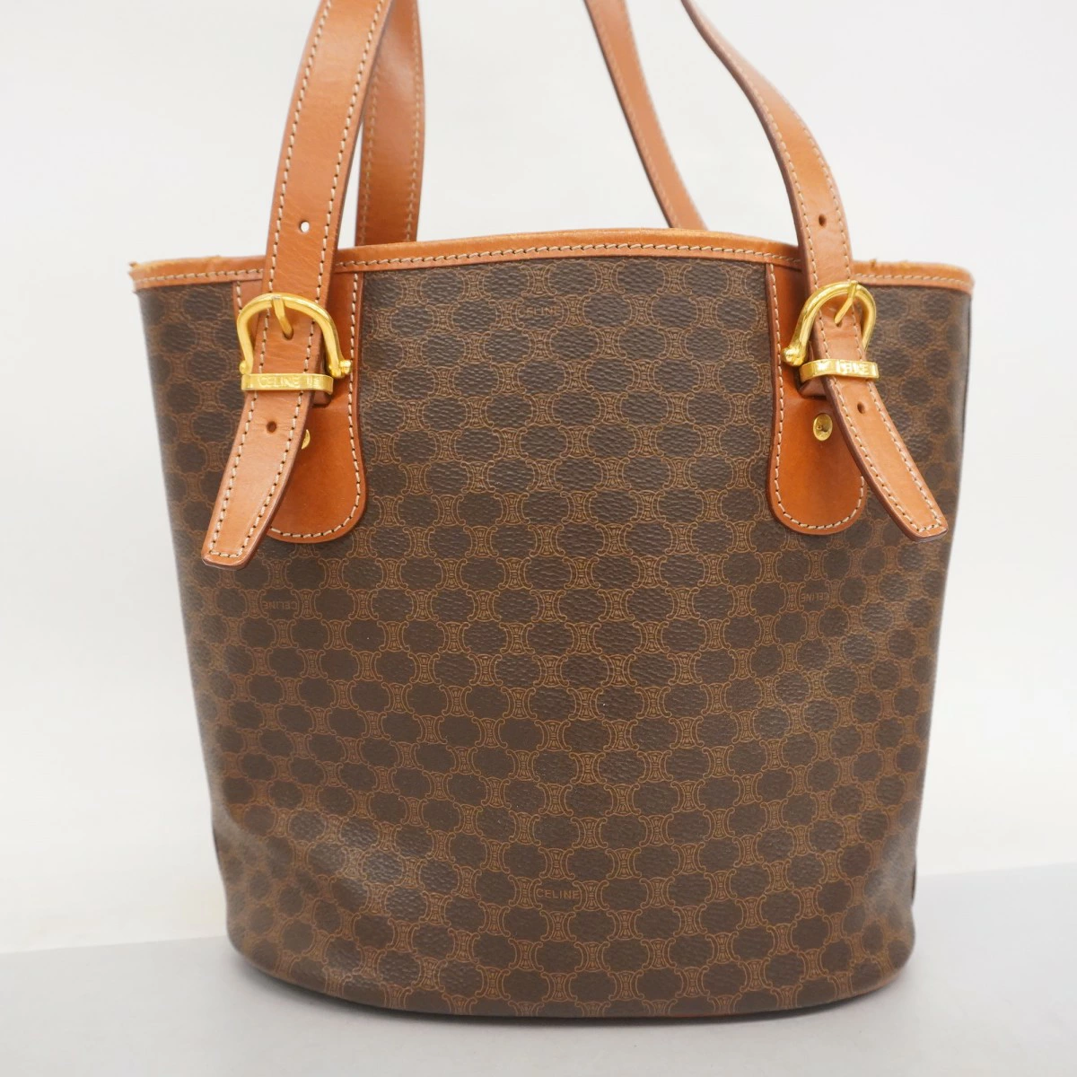 ★最終価格★SALE【5mb1124-h】セリーヌ トートバッグ マカダム PVC ブラウン ゴールド金具【中古】レディース