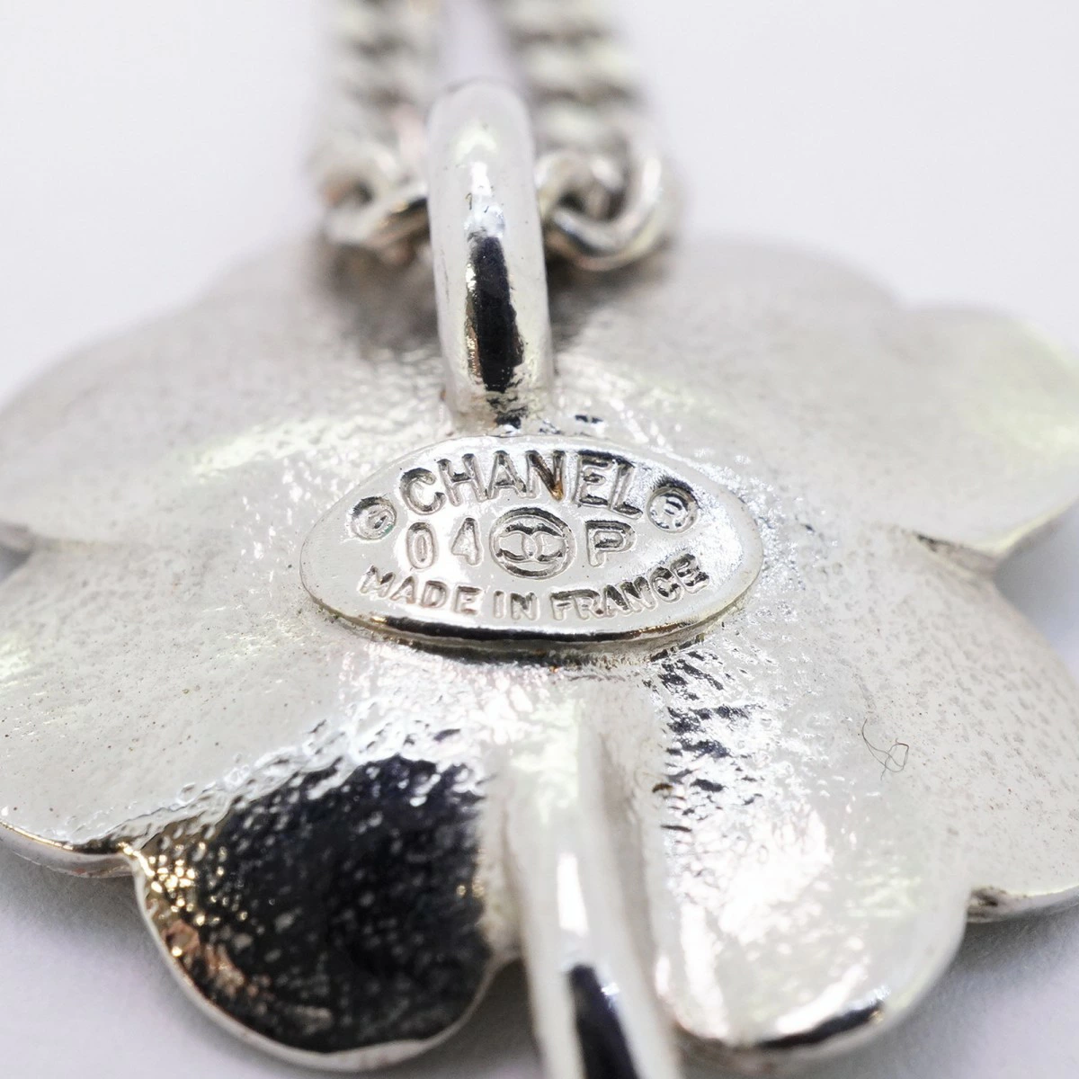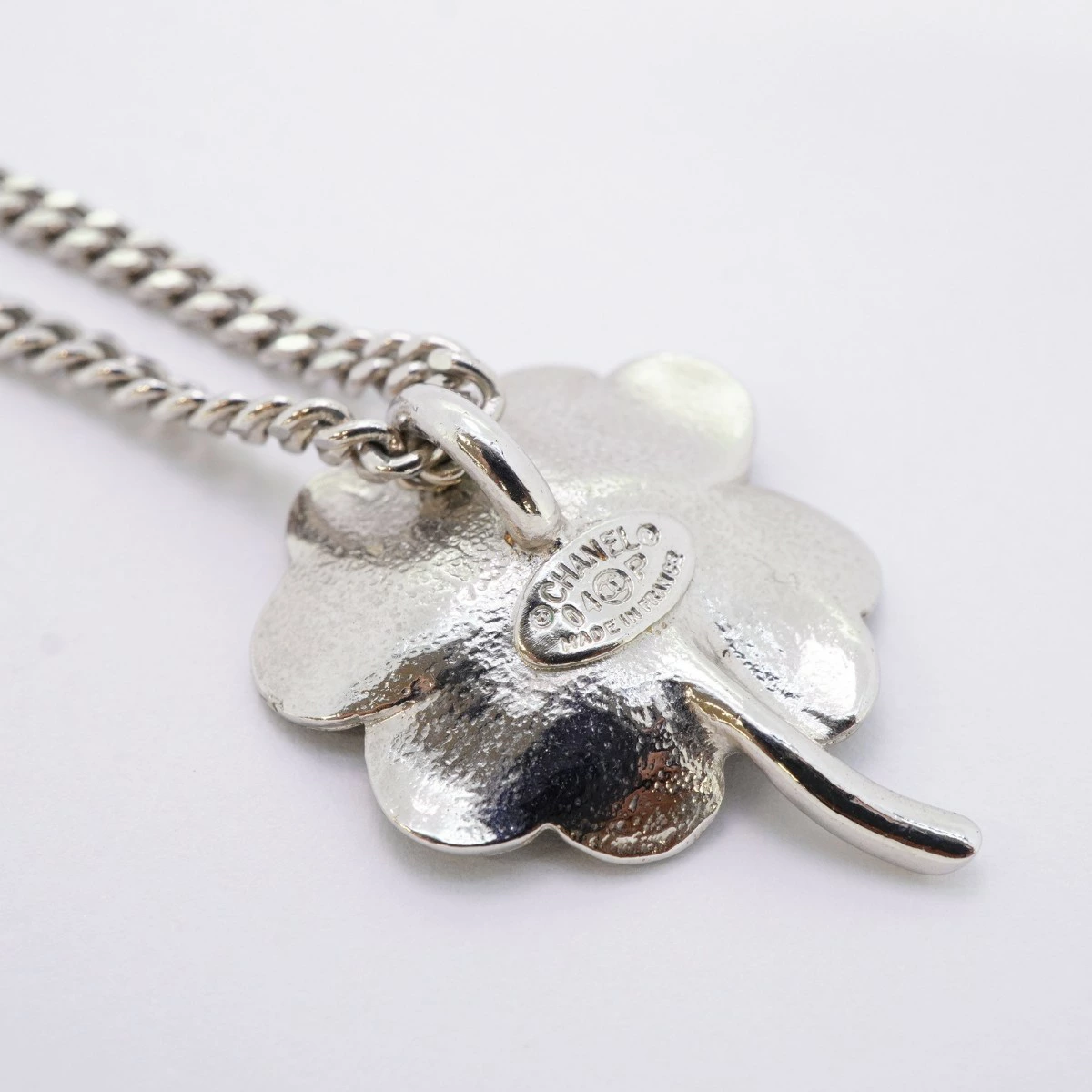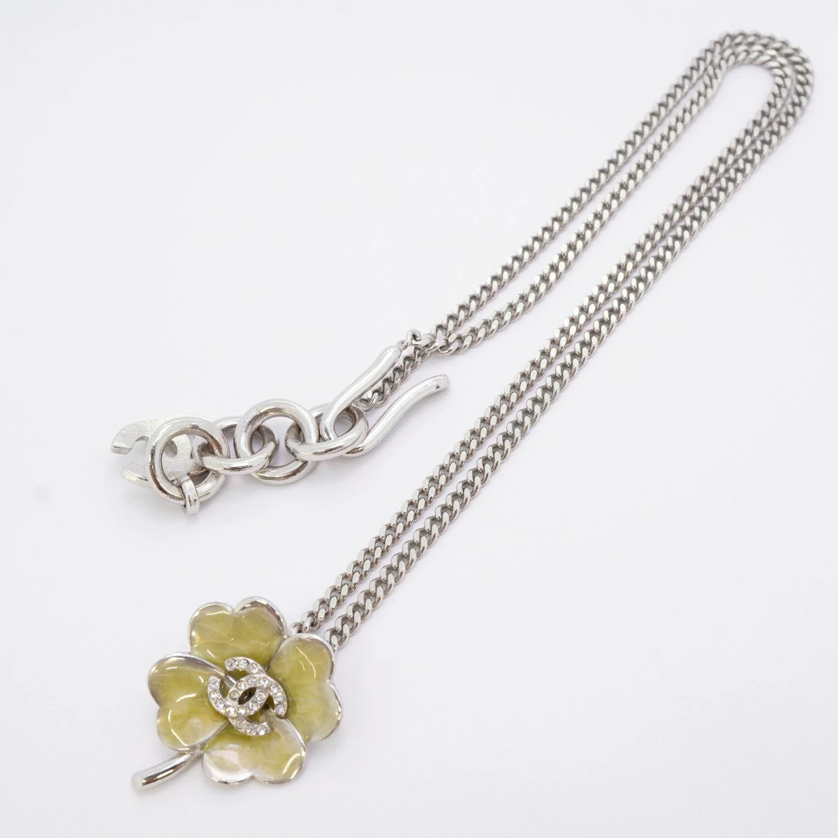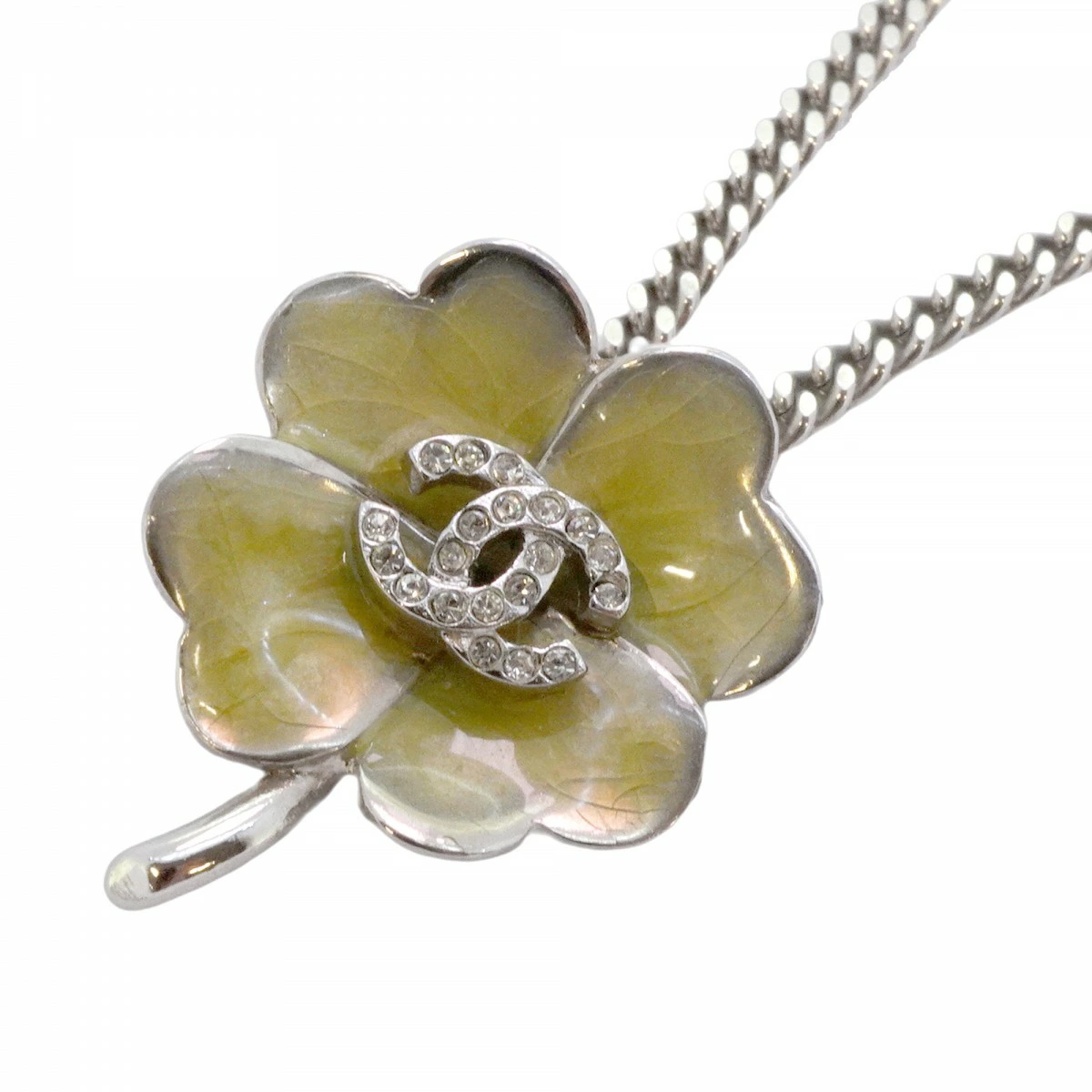 ★最終価格【5jib0635】シャネル ネックレス ココマーク クローバーモチーフ メタル ラインストーン シルバー グリーン【中古】レディース