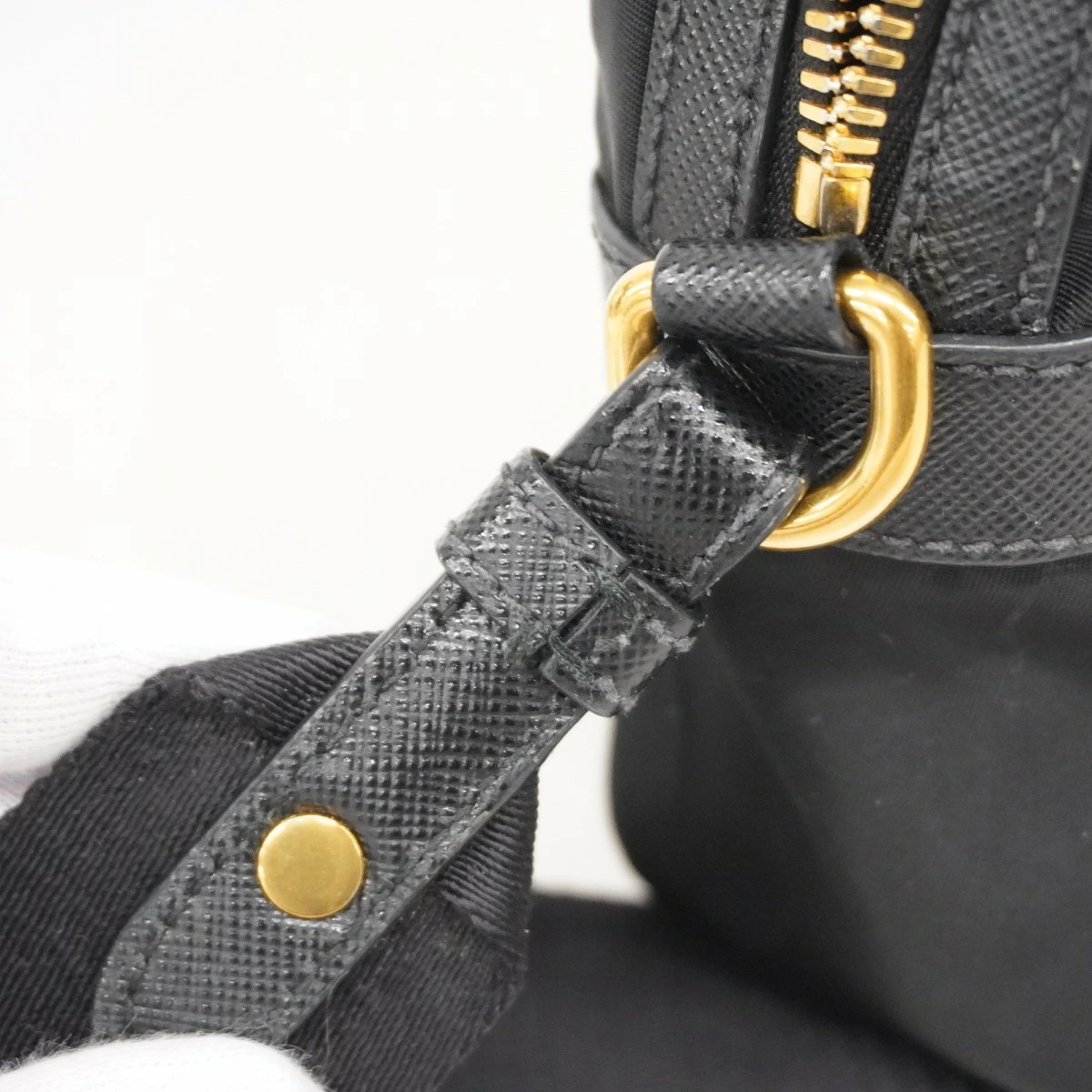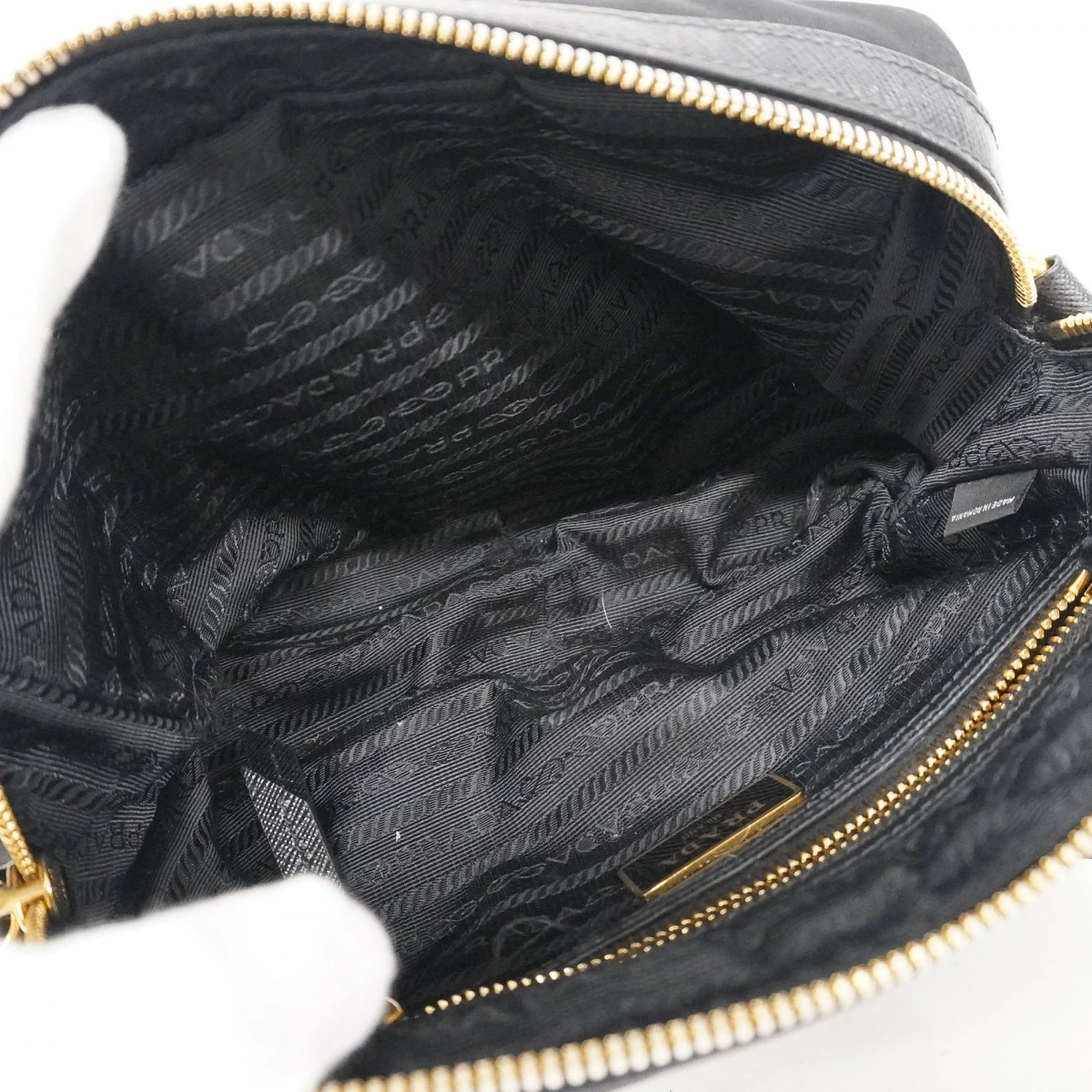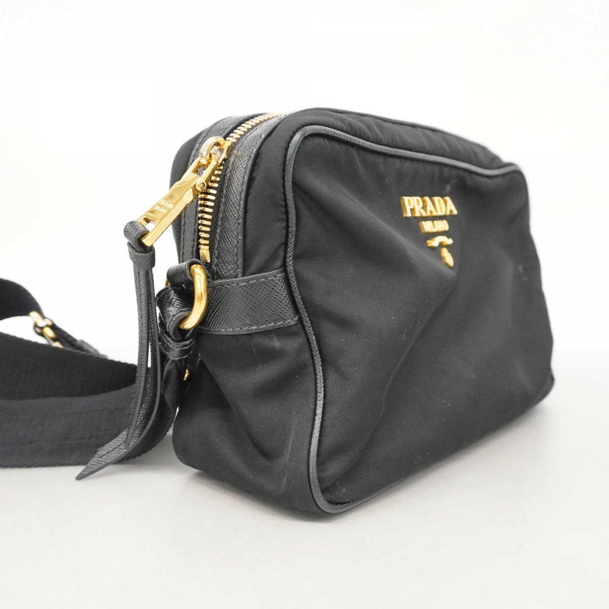 ★最終価格【5ma0517】プラダ ショルダーバッグ ナイロン ブラック ゴールド金具【中古】レディース
