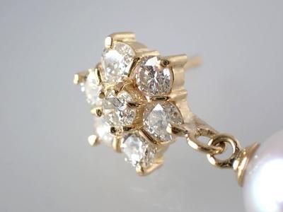 真珠科学研究所の花珠を使用した18金台のピアスダイヤモンドは0.48カラットペアーで0.96カラット使用 品質はBクラス 少し黄色みを帯びていますが10倍の拡大鏡使用で天然の傷を発見する出来るレベルです花珠真珠同様「テリ」は強く、存在感があります総重量約3.73g ダイヤモンド部分0.8X1.2㎝ 珠サイズ約7.7mmピアスの軸はLサイズ0.9π使用ですピアスのキャッチは、シリコンを無料でお付けします 18金をご希望の場合はお問い合わせください