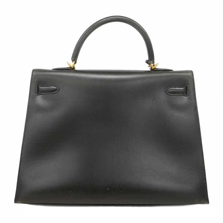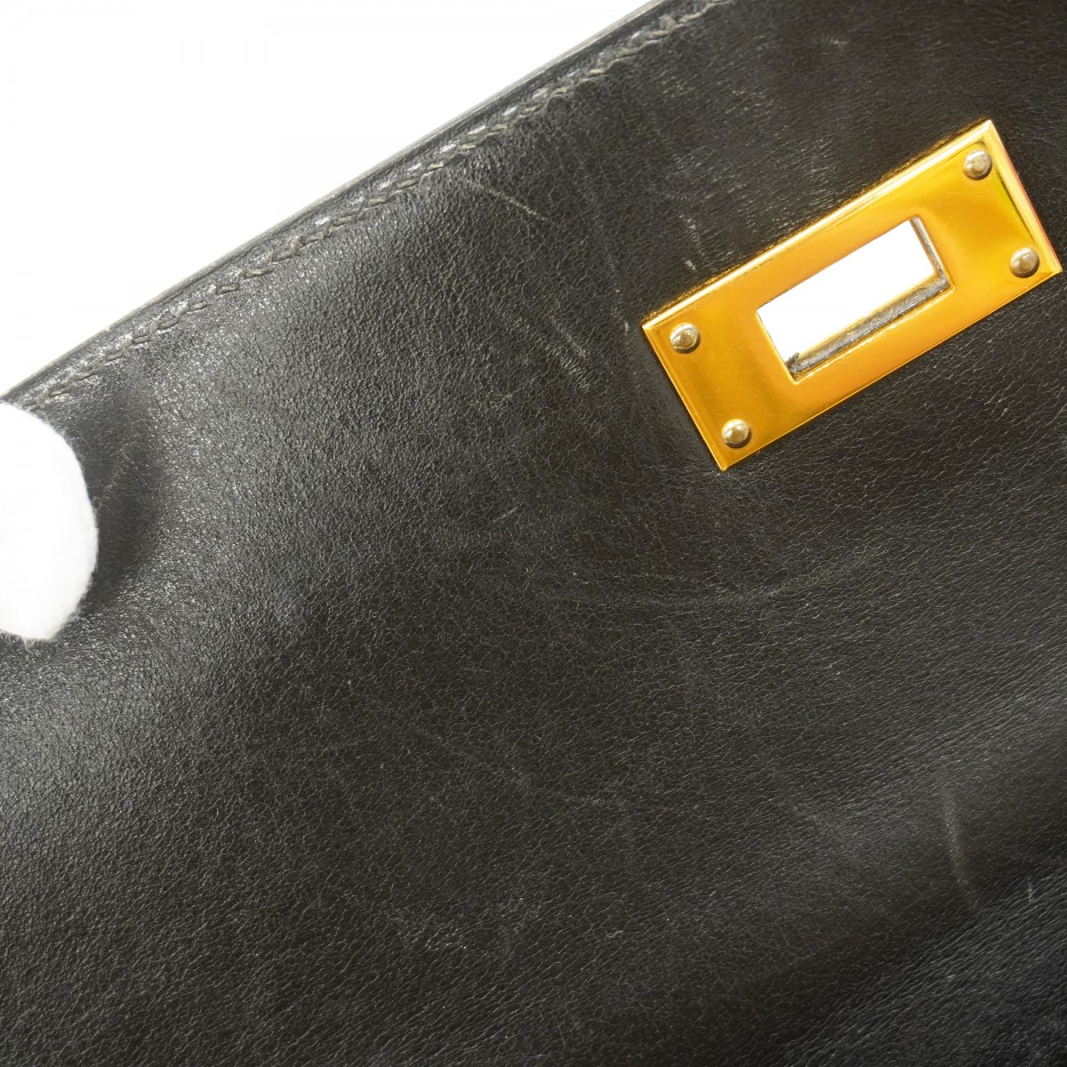★SALE【5ia0940-h】エルメス ハンドバッグ ケリー35 ボックスカーフ ブラック ゴールド金具 □D刻印【中古】レディース