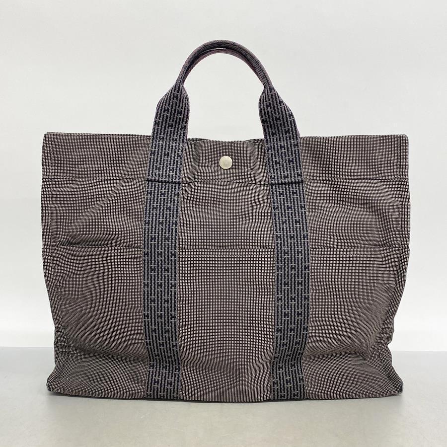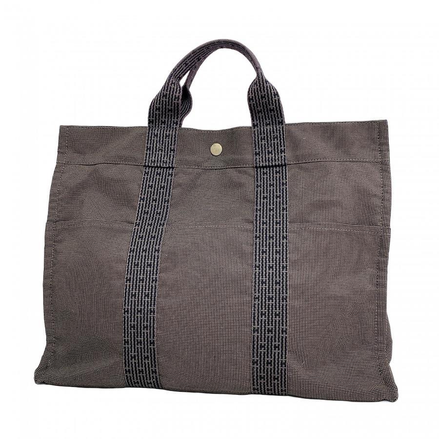 ★SALE【5ia1093-h】エルメス トートバッグ エールラインMM キャンバス グレー シルバー金具【中古】メンズ レディース ユニセックス