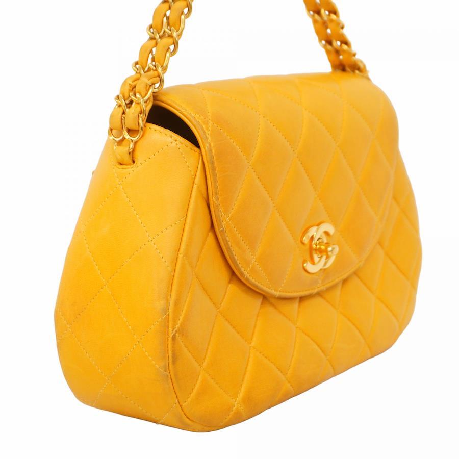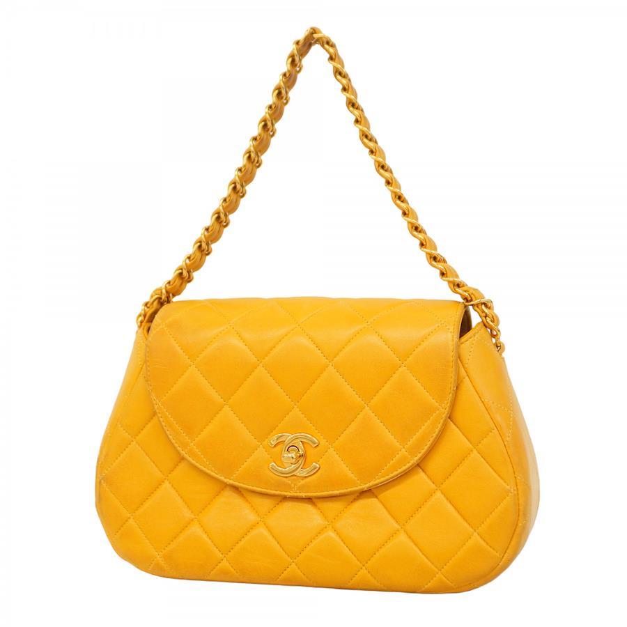 ★SALE【5ib1520-h】シャネル ハンドバッグ マトラッセ ラムスキン イエロー ゴールド金具【中古】レディース