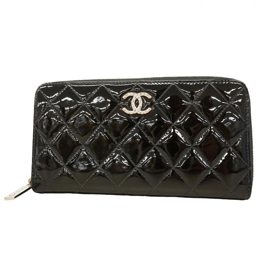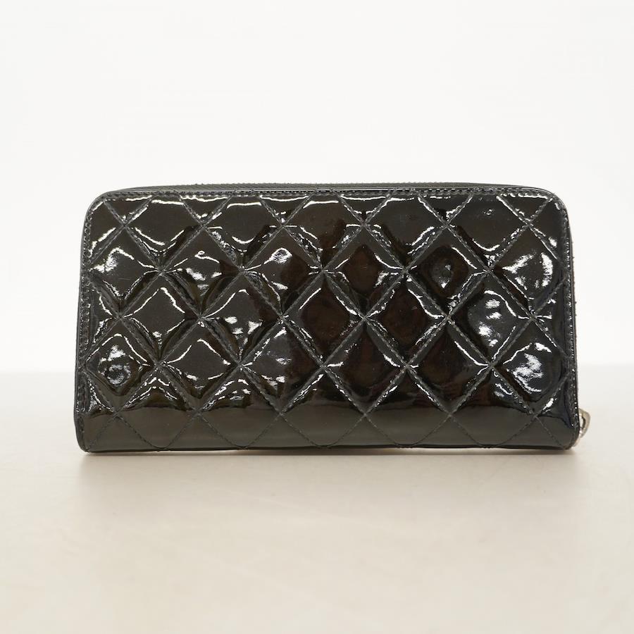 ★SALE【5ib1617-h】シャネル 長財布 マトラッセ パテントレザー ブラック シルバー金具【中古】レディース