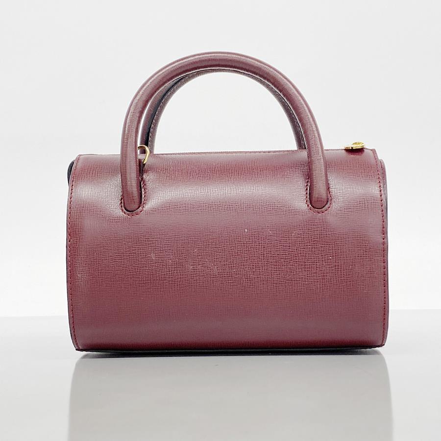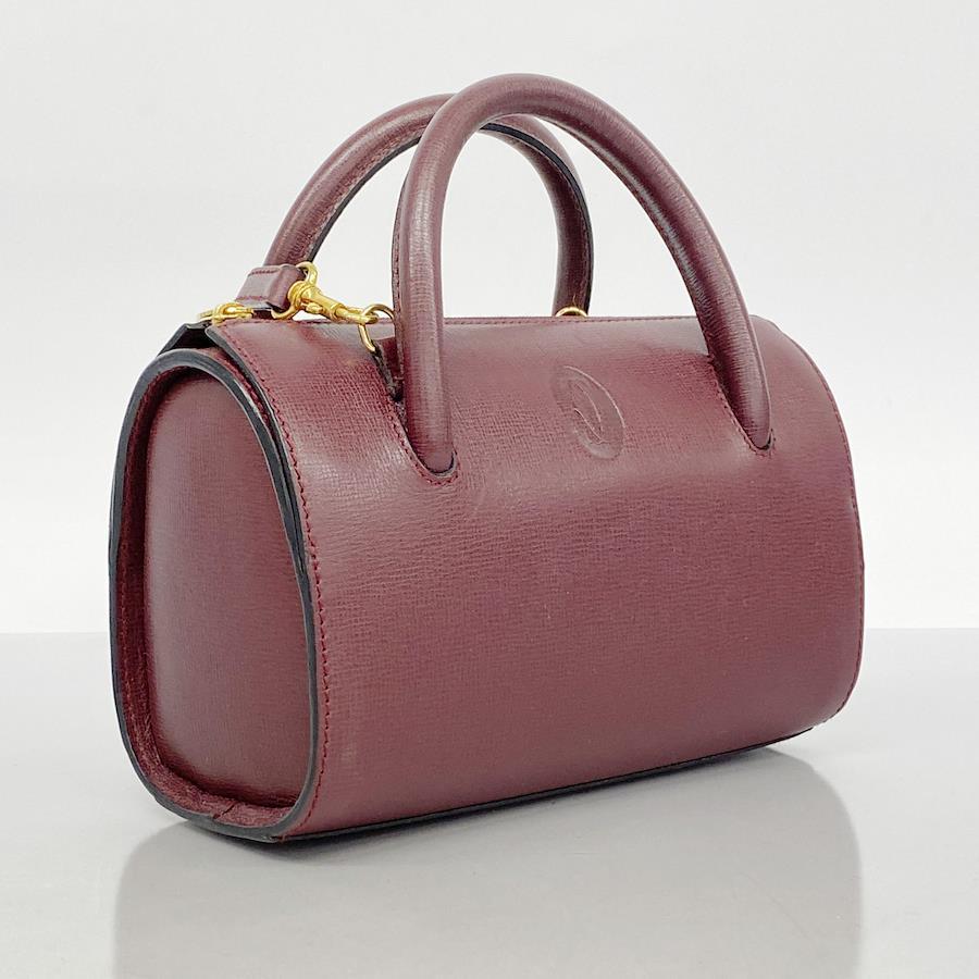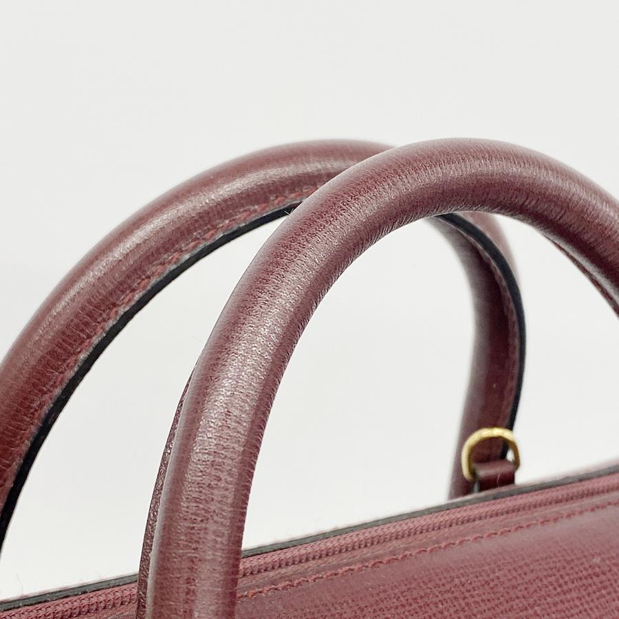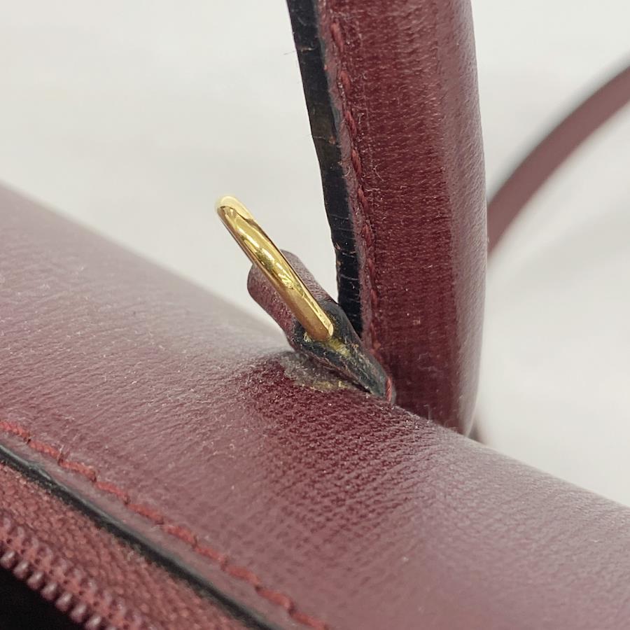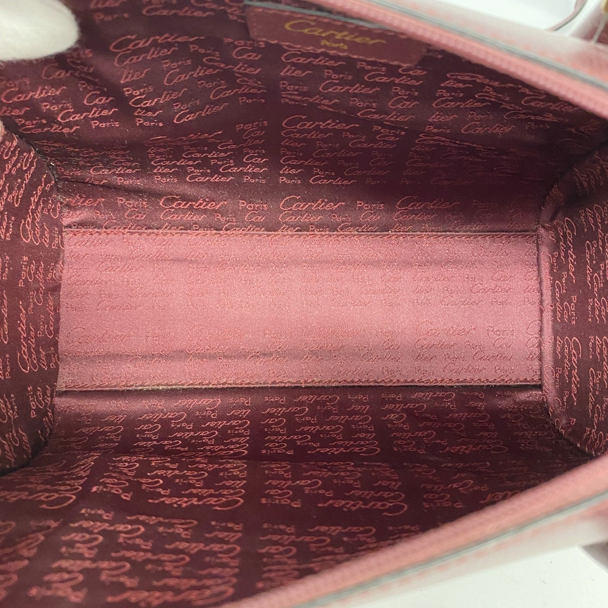 ★SALE【5ib2107-h】カルティエ ハンドバッグ マスト レザー ボルドー ゴールド金具【中古】レディース