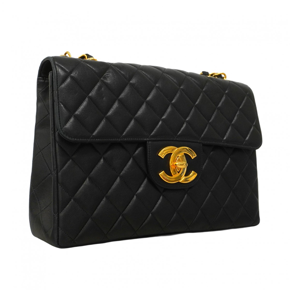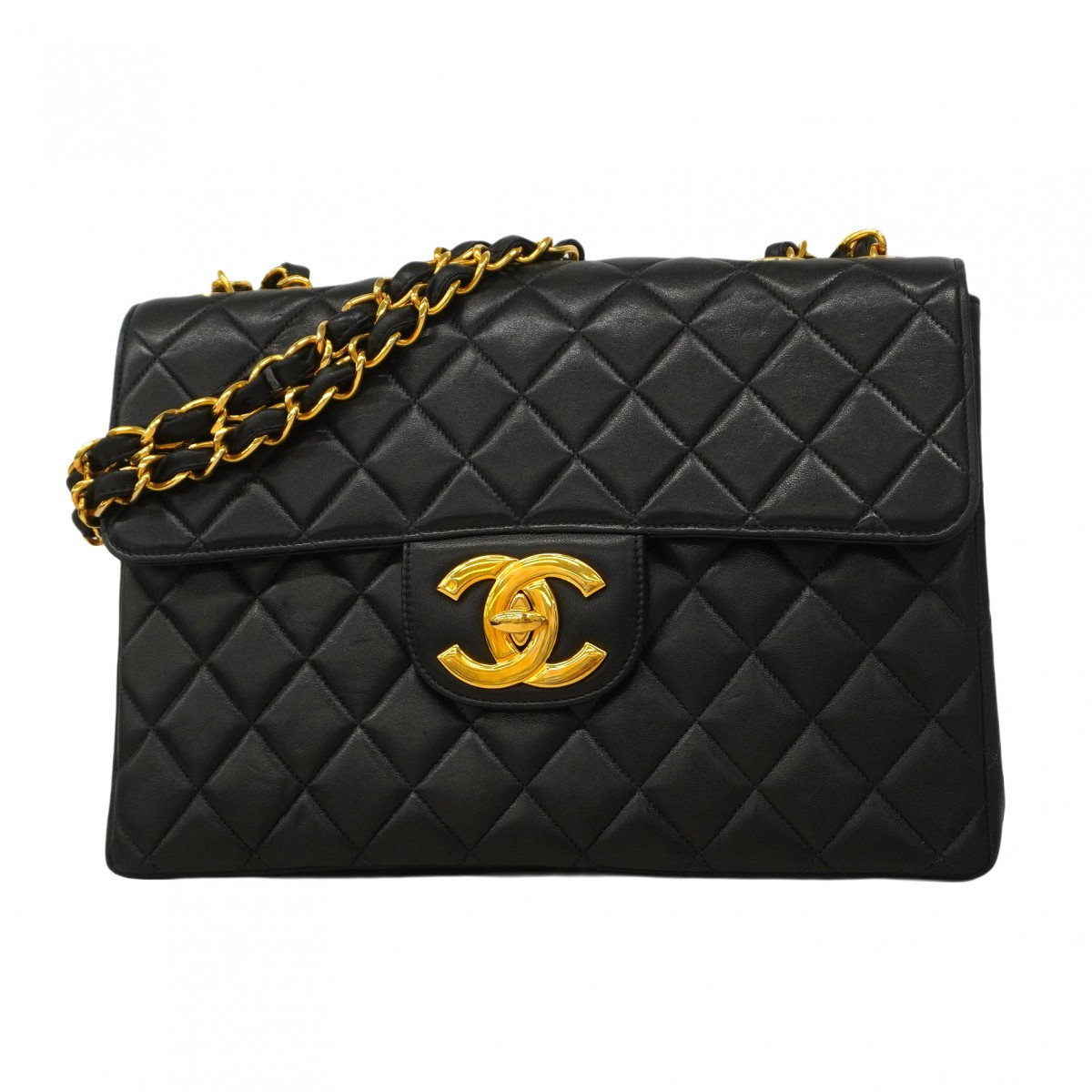 ★SALE【5ib2539-h】シャネル ショルダーバッグ デカマトラッセ ラムスキン ブラック ゴールド金具【中古】レディース
