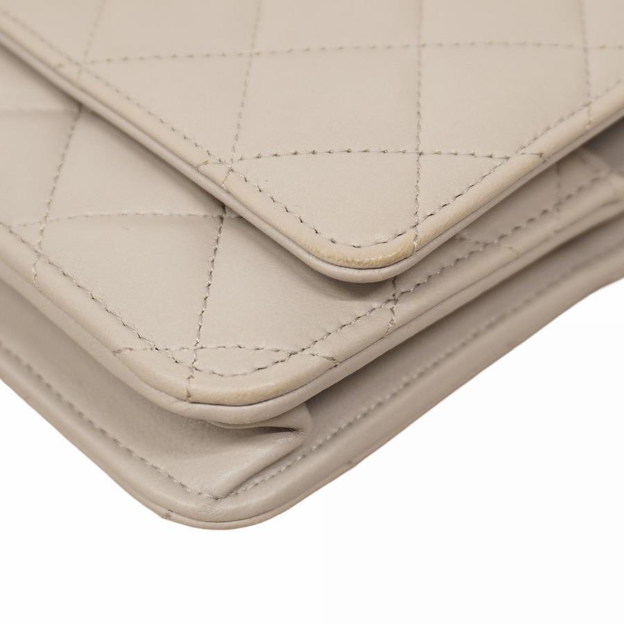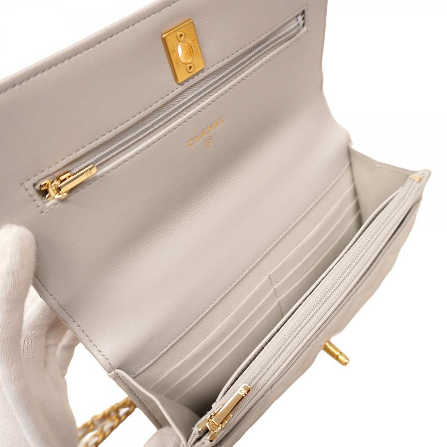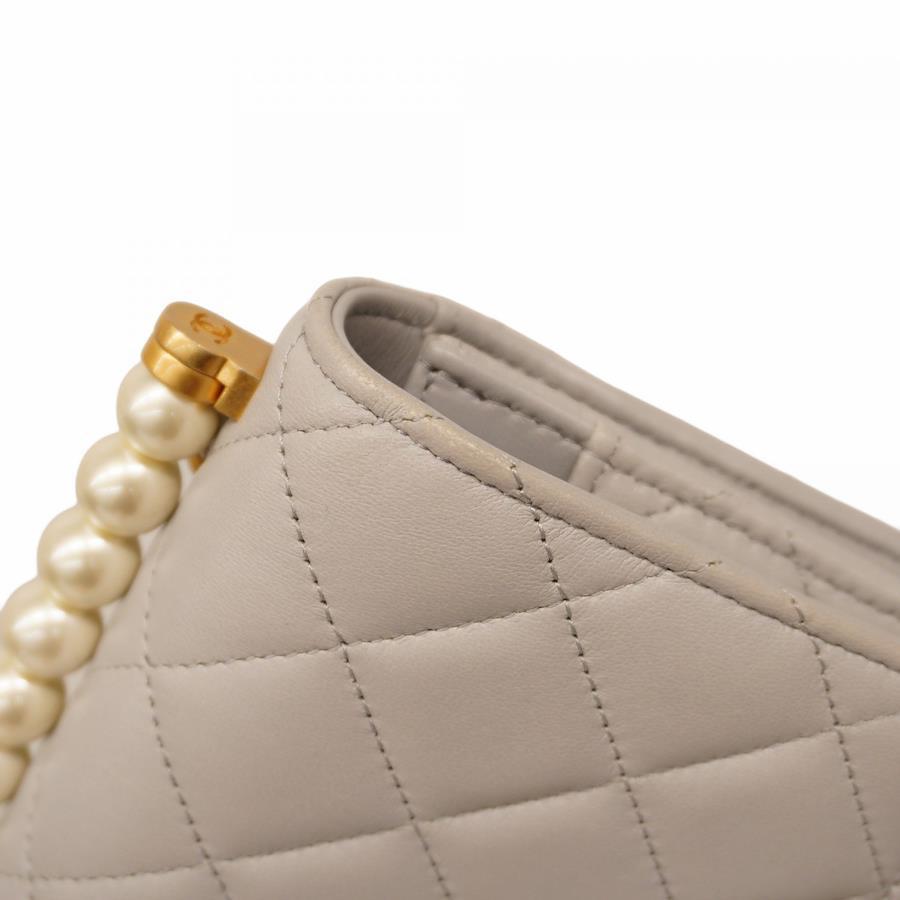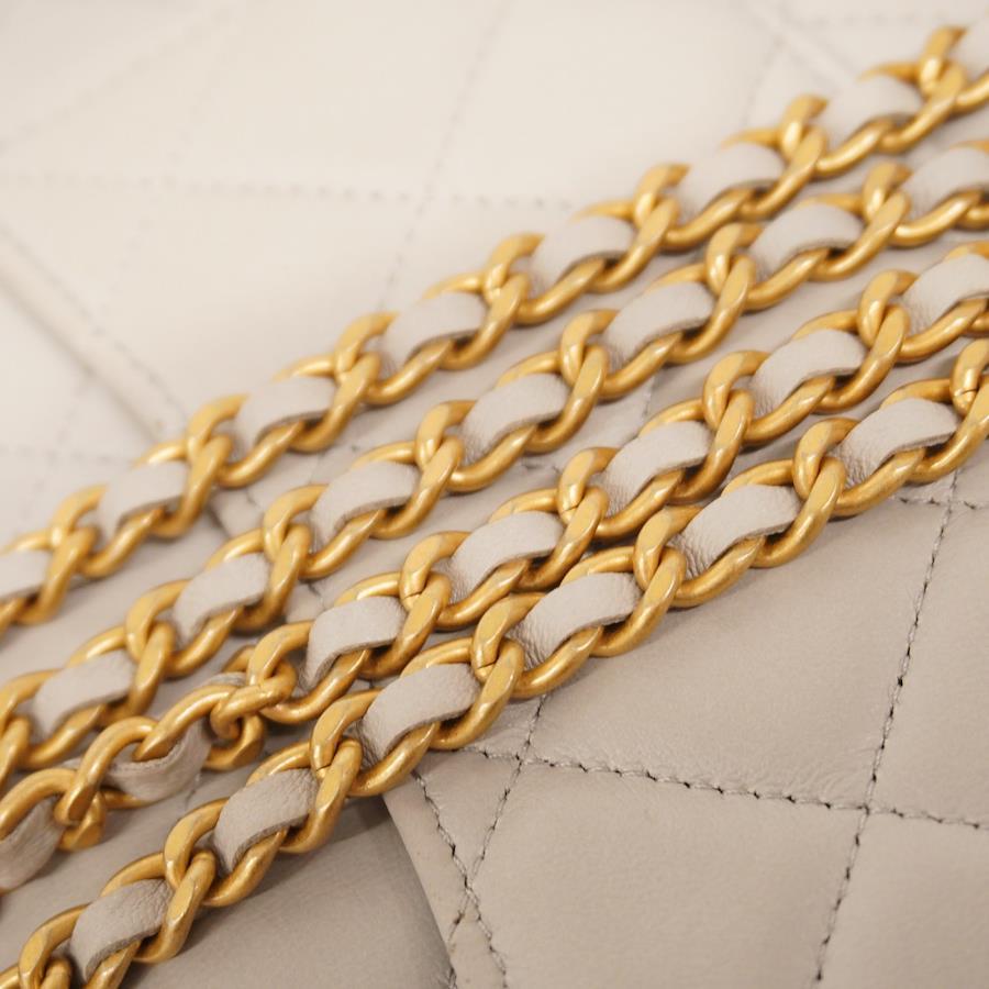 ★SALE【5ic3133-h】シャネル ショルダーウォレット マトラッセ ラムスキン ライトグレー ゴールド金具【中古】レディース