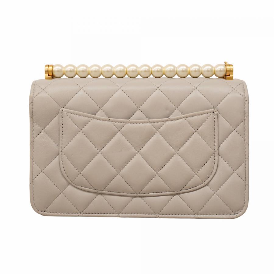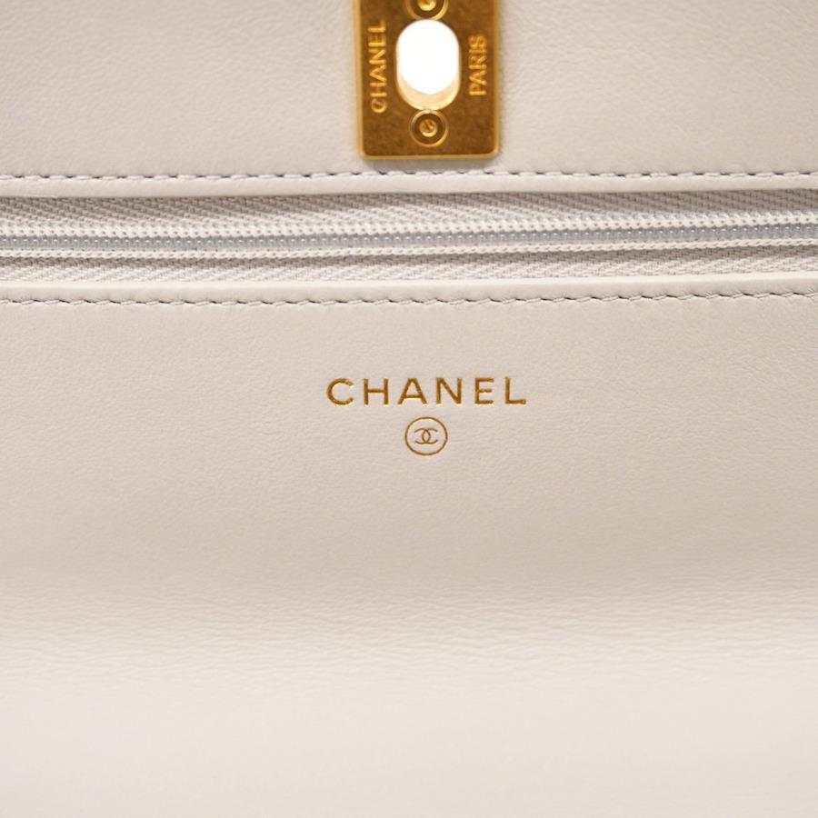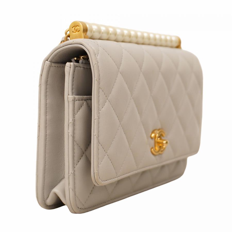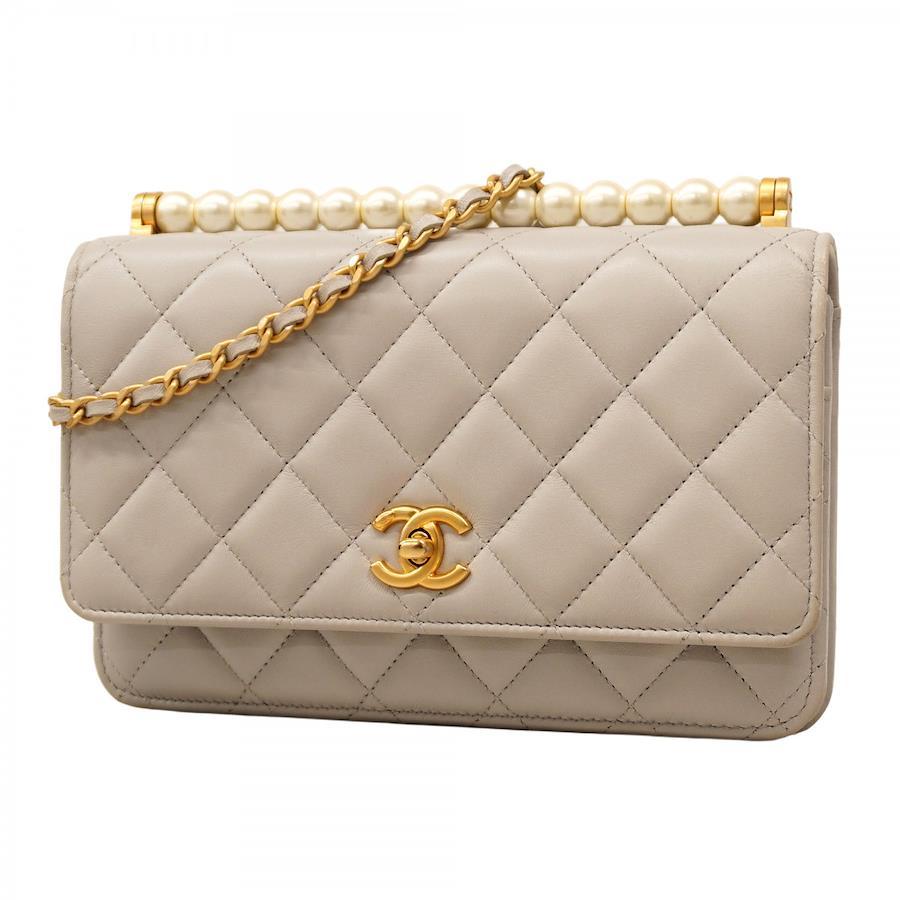 ★SALE【5ic3133-h】シャネル ショルダーウォレット マトラッセ ラムスキン ライトグレー ゴールド金具【中古】レディース
