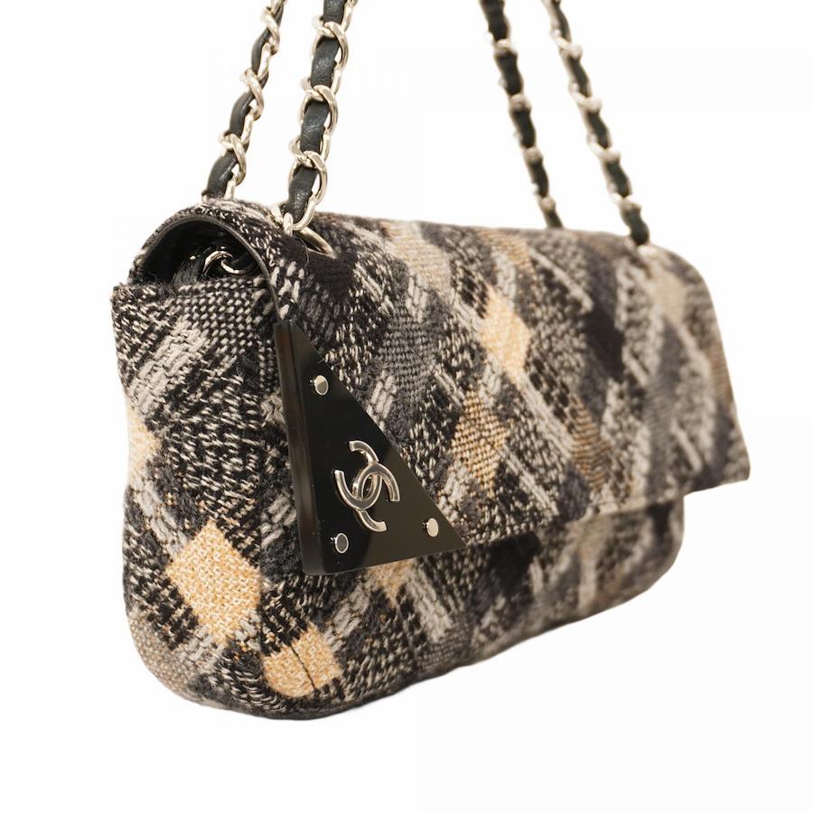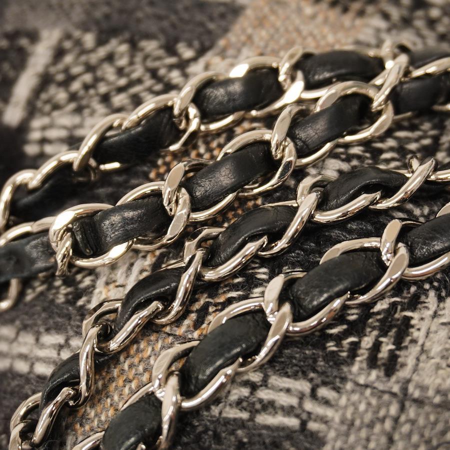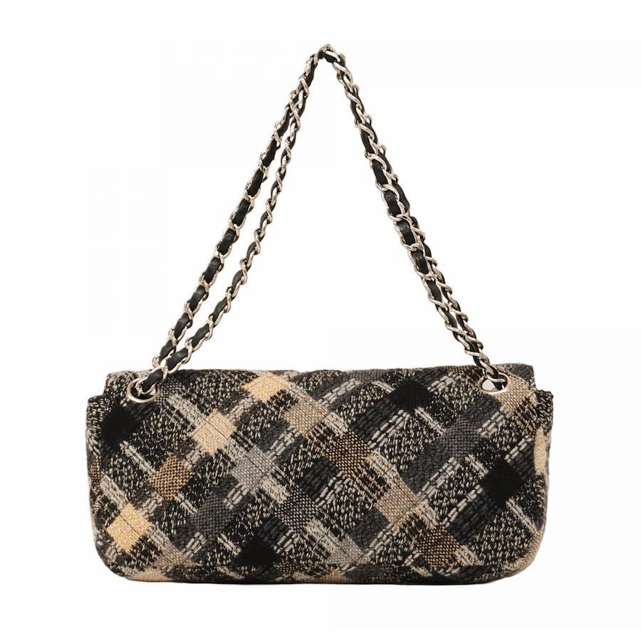★SALE【5ic3134-h】シャネル ショルダーバッグ ツイード ブラック ホワイト ベージュ シルバー金具【中古】レディース