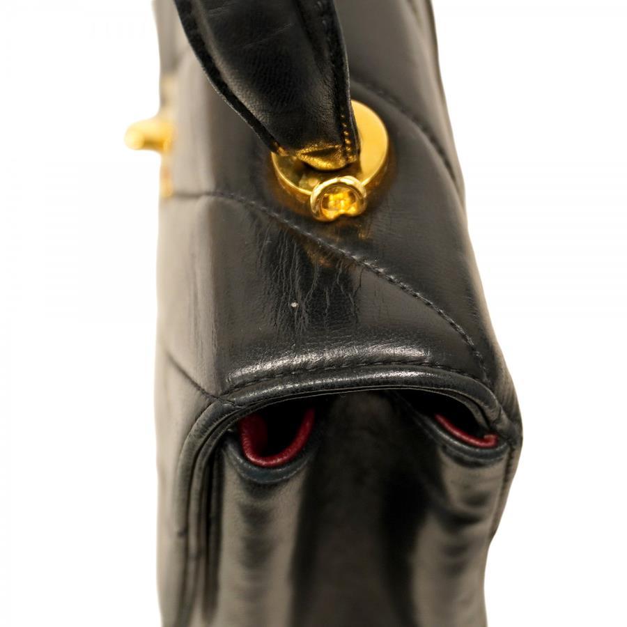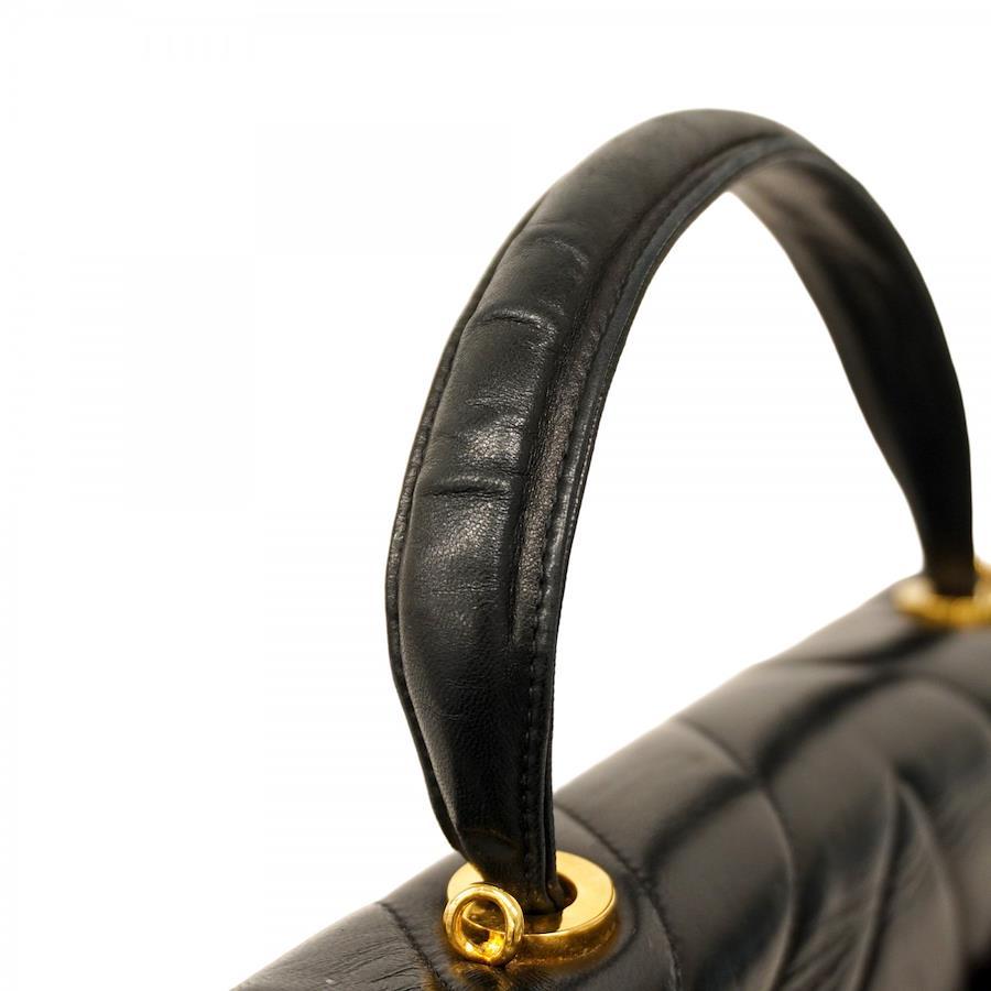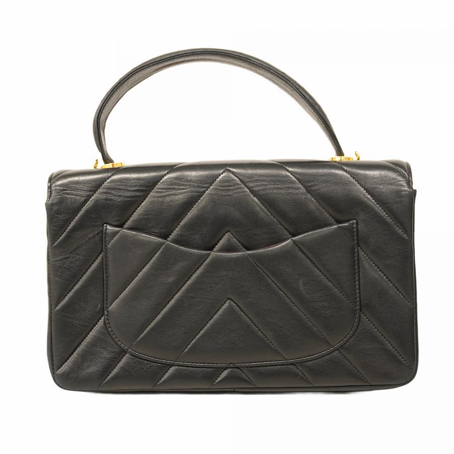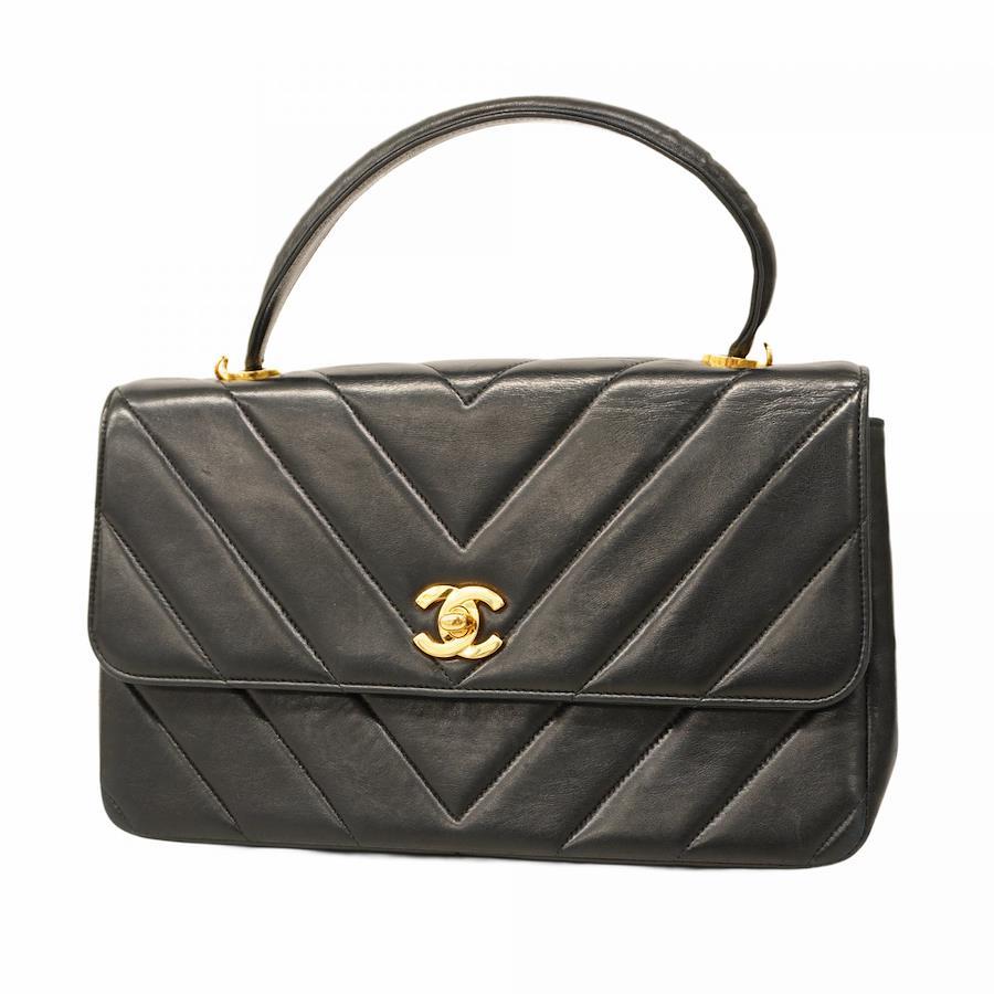 ★SALE【5ic3136-h】シャネル ハンドバッグ シェブロン ラムスキン ブラック ゴールド金具【中古】レディース
