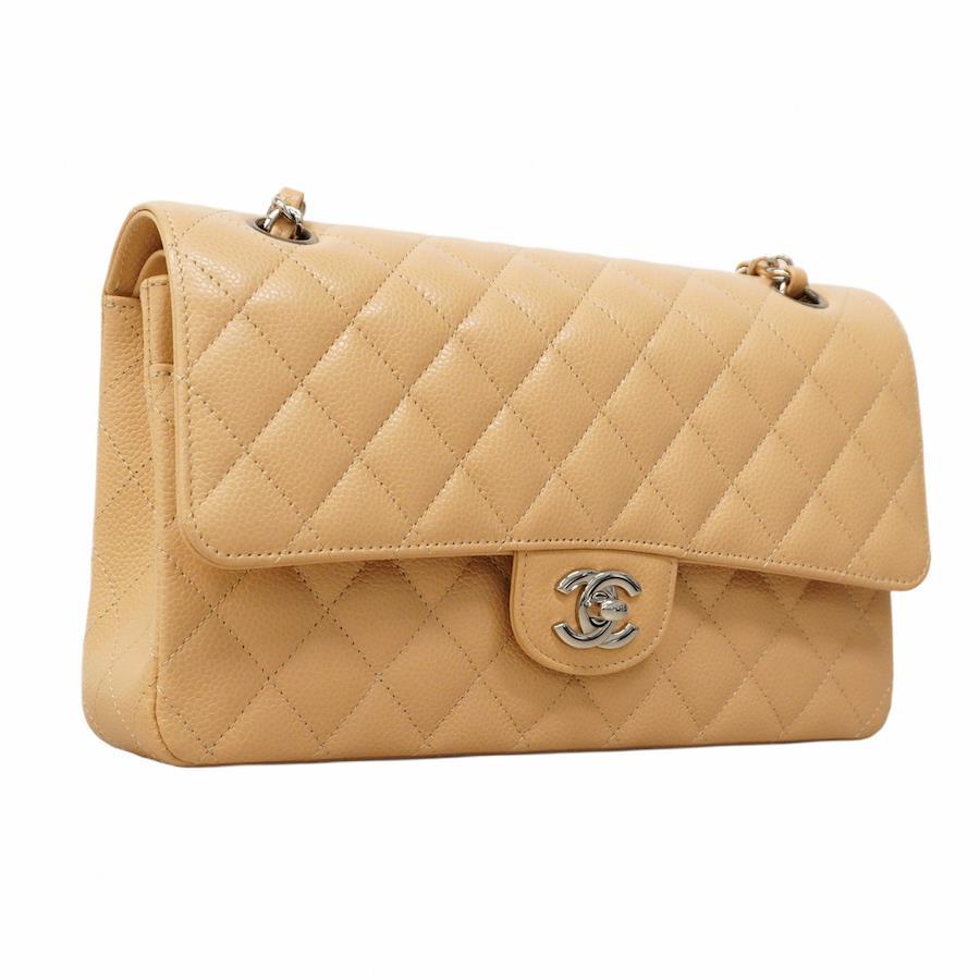 ★SALE【5ic3321-h】シャネル ショルダーバッグ マトラッセ キャビアスキン ベージュ シルバー金具【中古】レディース