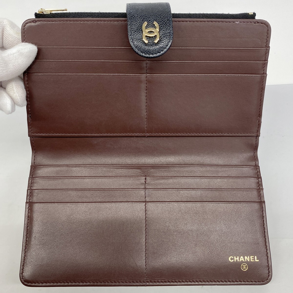 ★SALE【5ic3486】シャネル 長財布 マトラッセ キャビアスキン ブラック ゴールド金具【中古】レディース