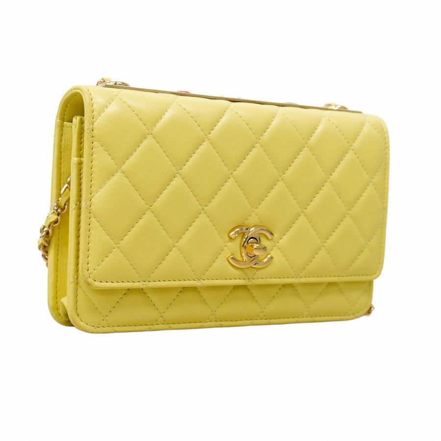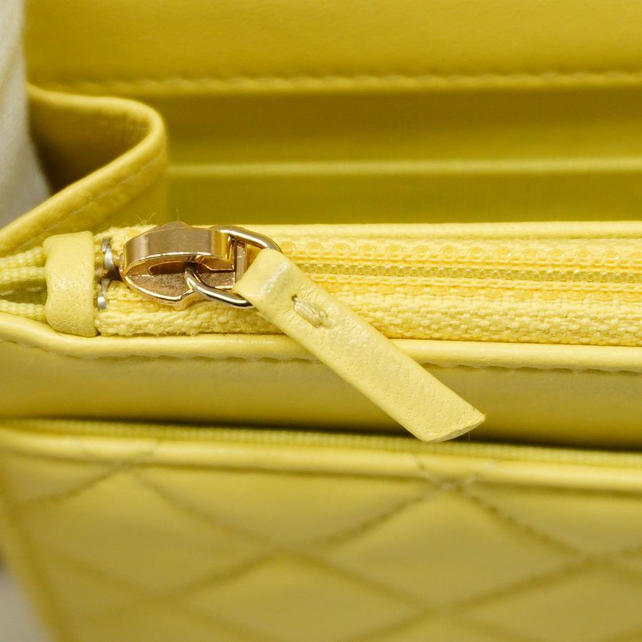 ★SALE【5ic3620】シャネル ショルダーウォレット マトラッセ ラムスキン イエロー シャンパンゴールド金具【中古】レディース