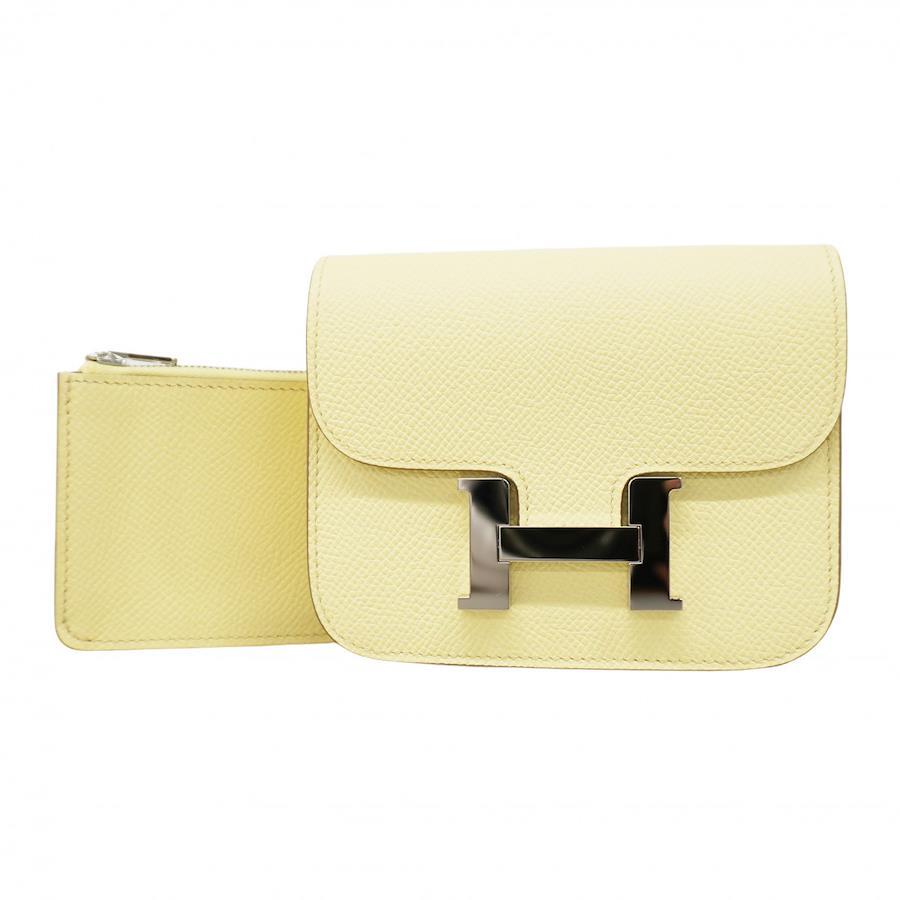 ★SALE【5ic3806-h】エルメス 財布 コンスタンス スリム ヴォーエプソン ジョーヌミルトン シルバー金具 W刻印【中古】レディース