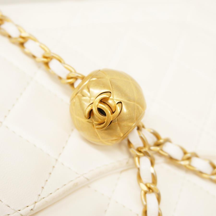 ★SALE【5ic4009-h】シャネル ショルダーバッグ マトラッセ ラムスキン ホワイト ゴールド金具【中古】レディース