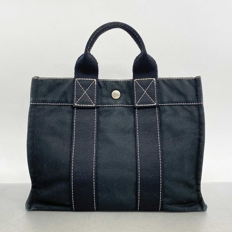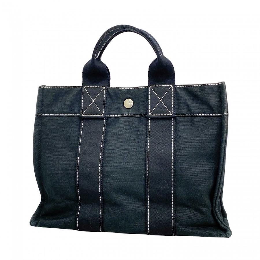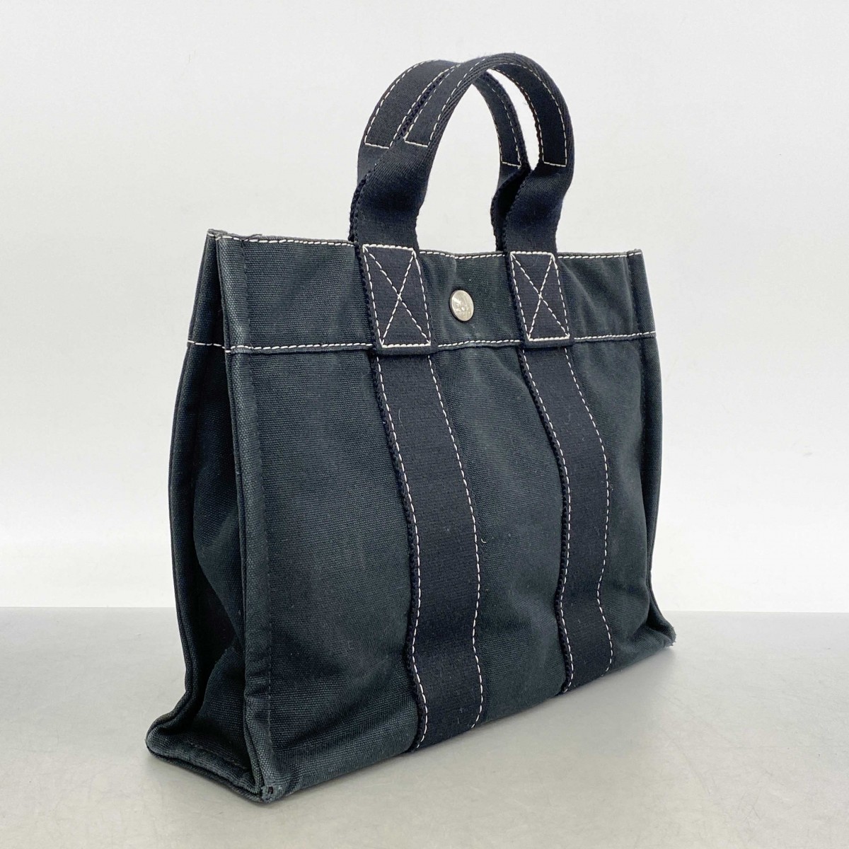 ★SALE【5id4187-h】エルメス ハンドバッグ ドーヴィルPM キャンバス ブラック シルバー金具【中古】レディース