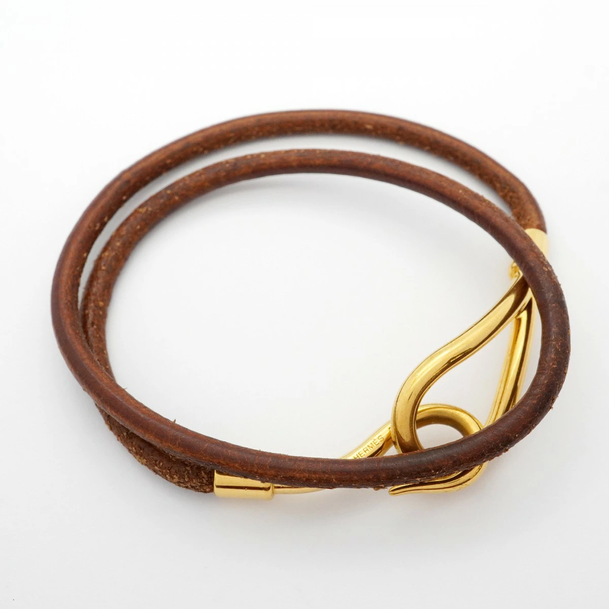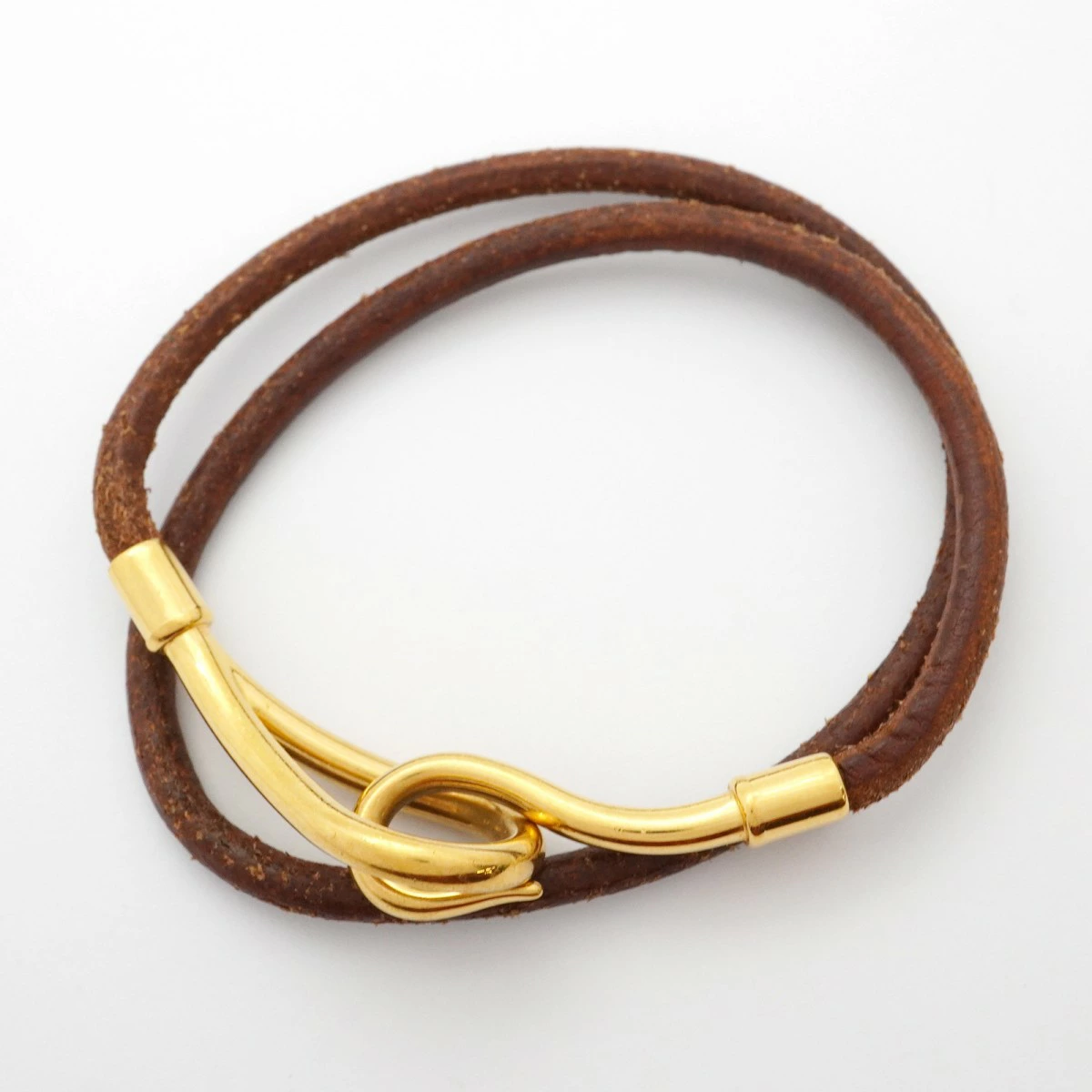 ★SALE【5jib0802】エルメス ブレスレット ジャンボフック GPメッキ レザー ゴールド ブラウン【中古】レディース