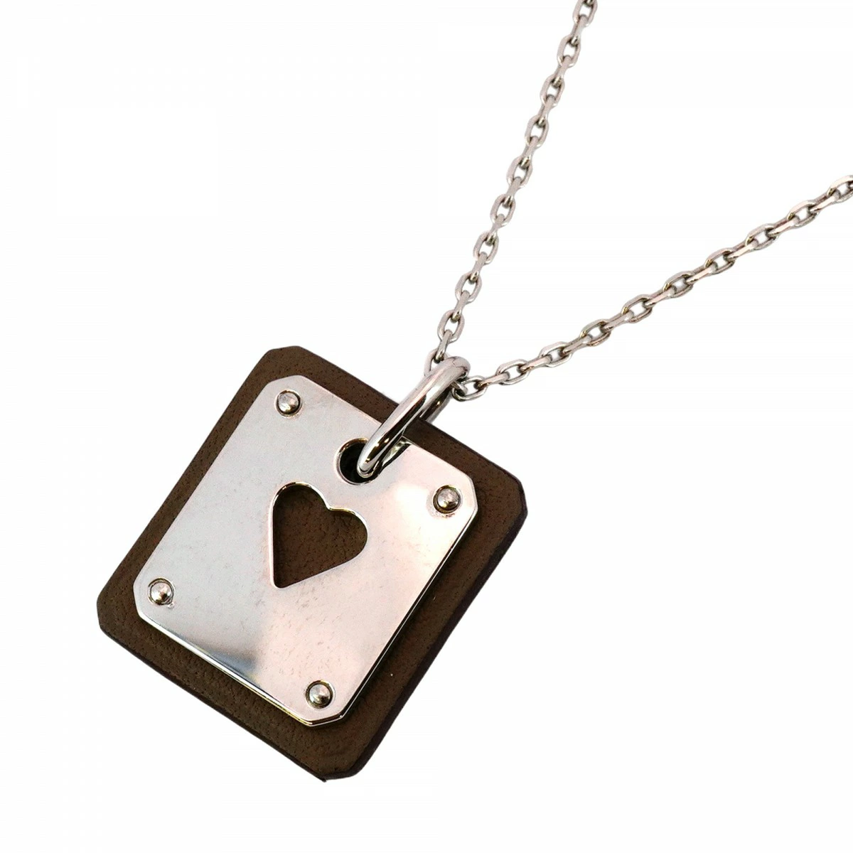 ★最終価格★SALE【5jmb0010】エルメス ネックレス アスドゥクール メタル レザー シルバー グレー ブラウン Z刻印【中古】レディース