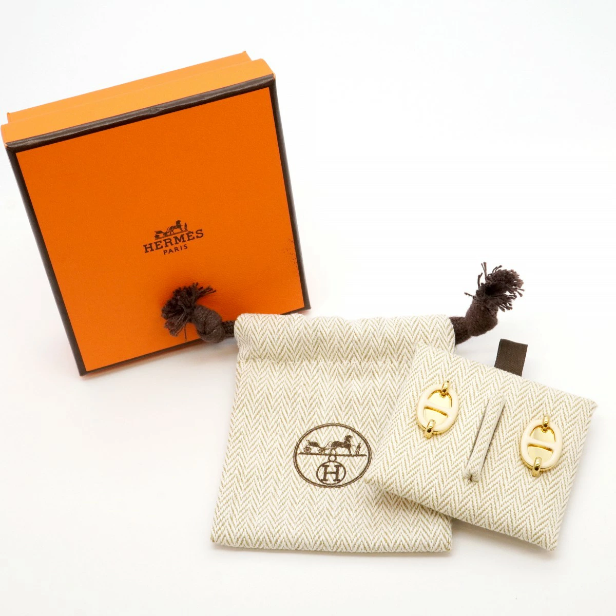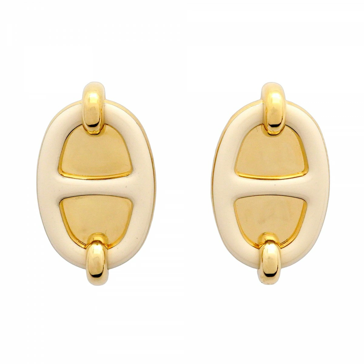 ★SALE【5jmb0125】エルメス ピアス ミニマイヨン GPメッキ ゴールド ホワイト【中古】レディース