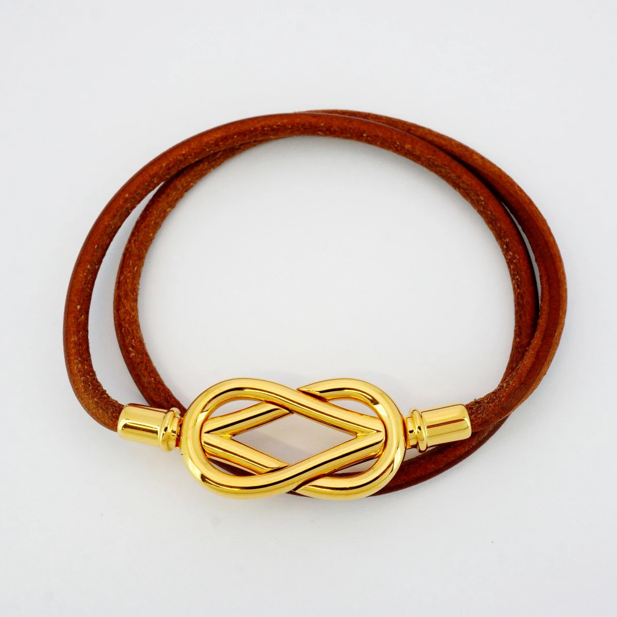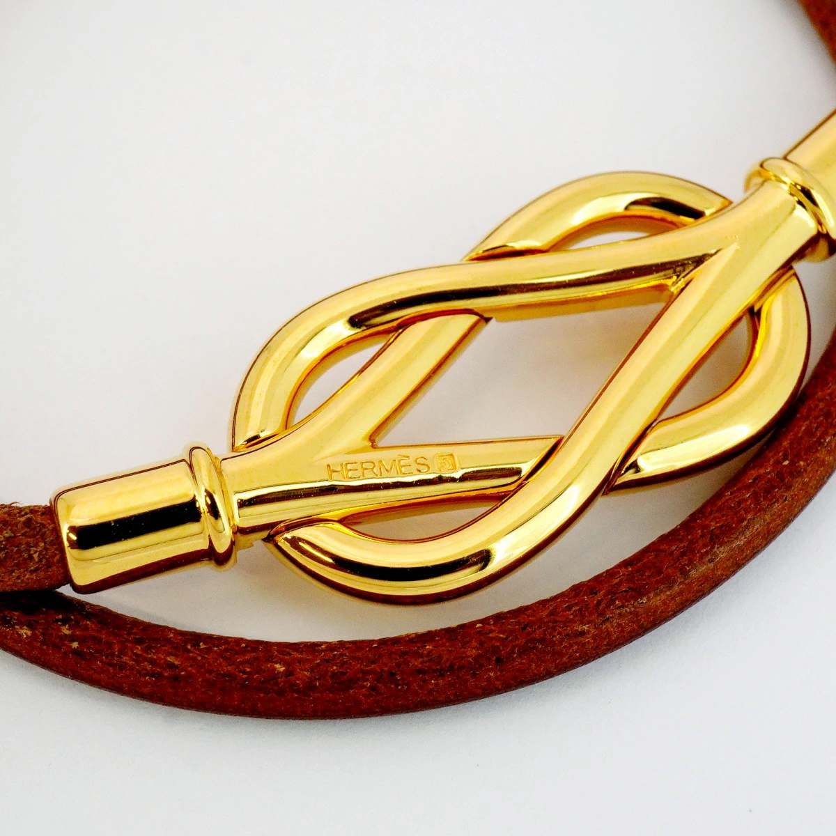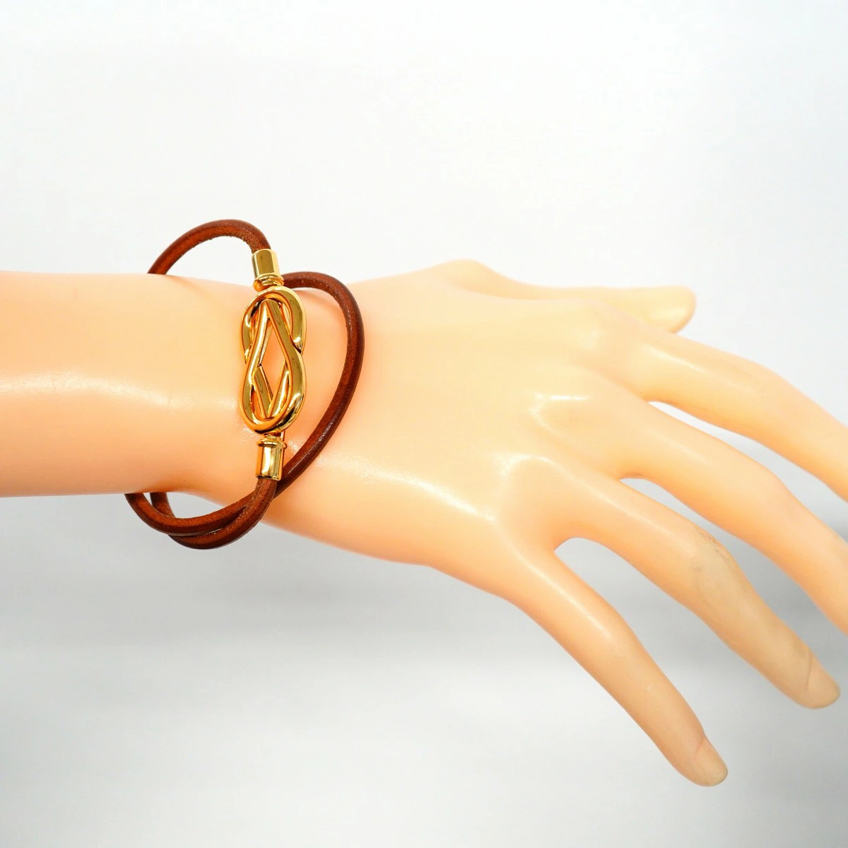 ★SALE【5jmb0189】エルメス ブレスレット アタメ 2連 GPメッキ レザー ゴールド ブラウン【中古】レディース