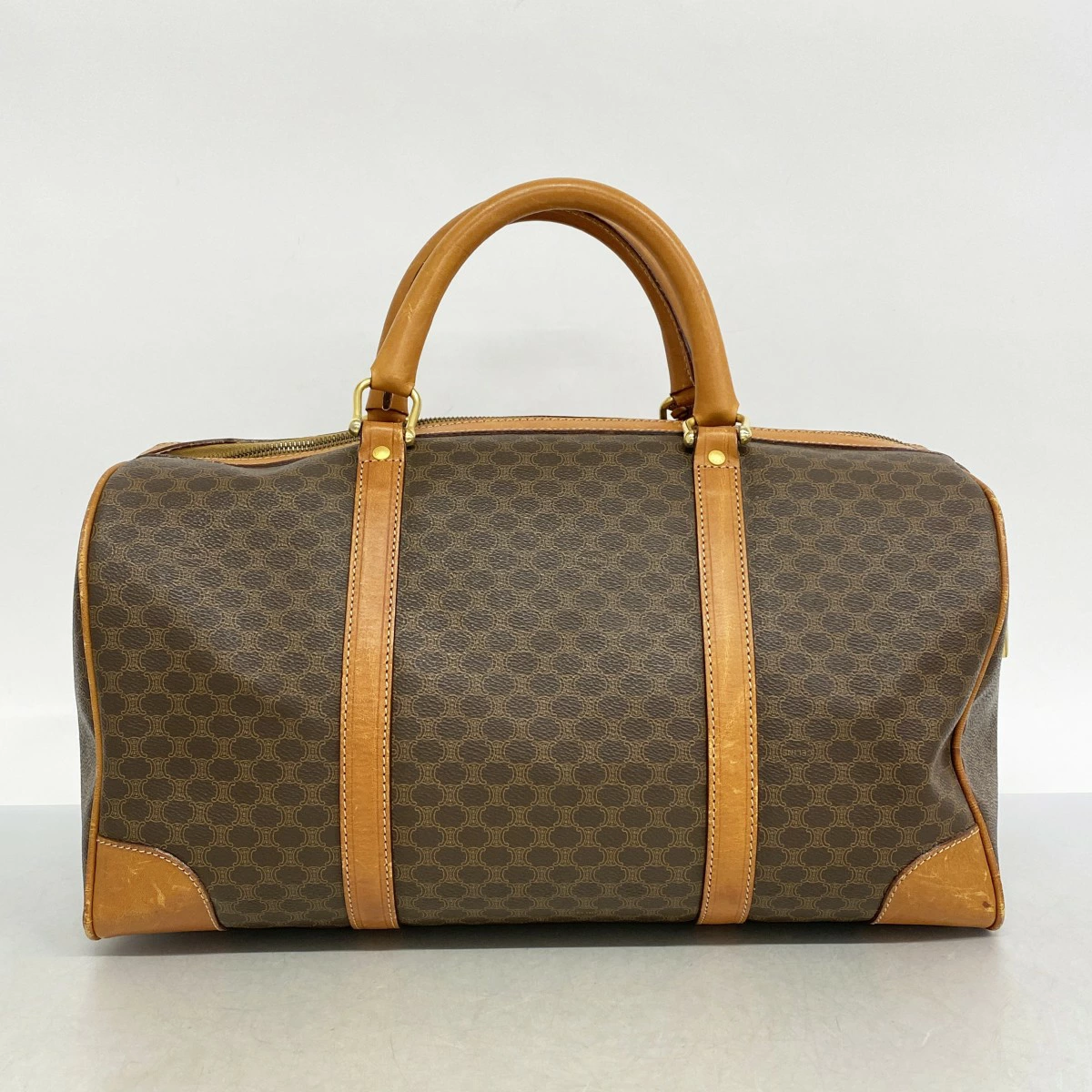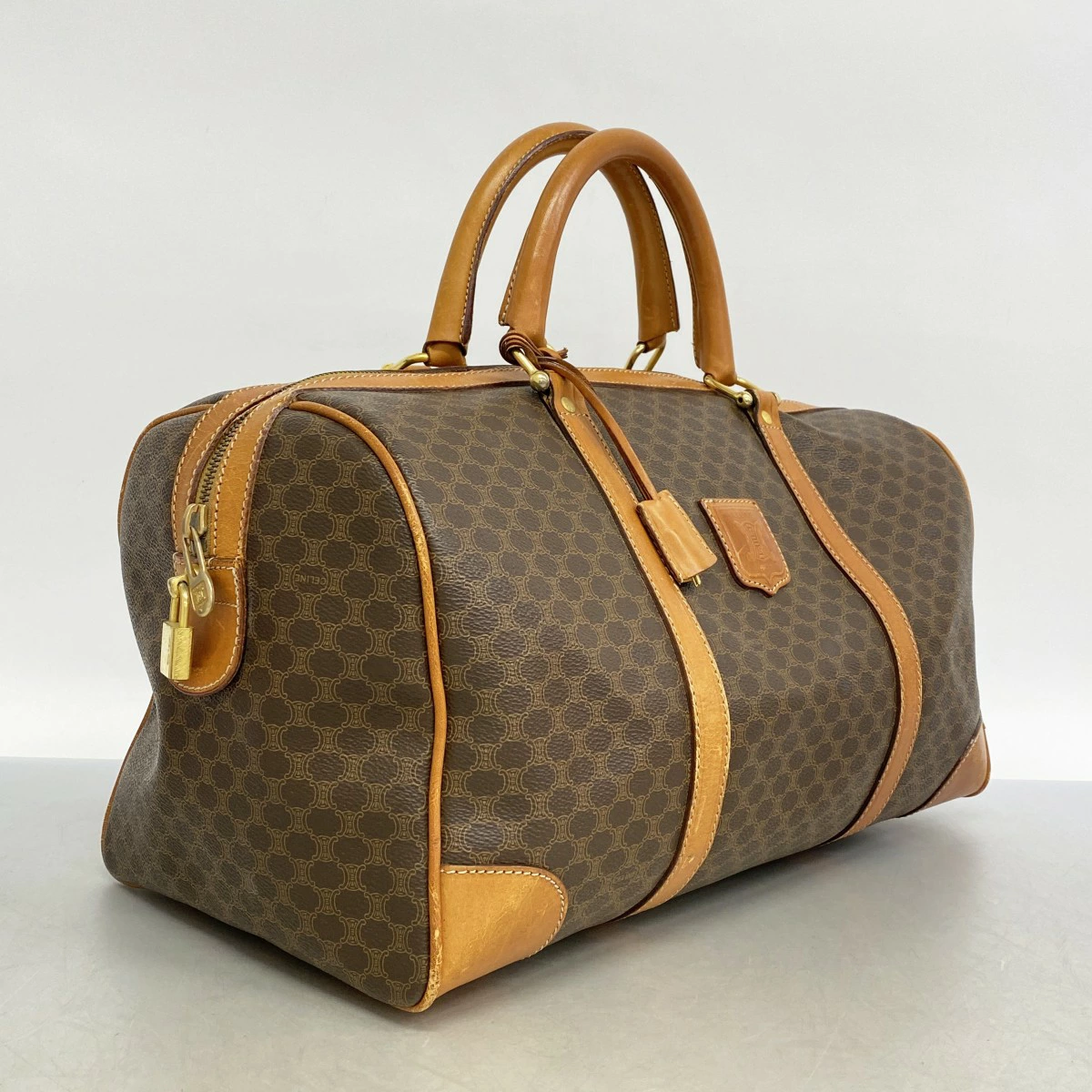 ★SALE【5ma0876-h】セリーヌ ボストンバッグ マカダム PVC ブラウン ゴールド金具【中古】レディース