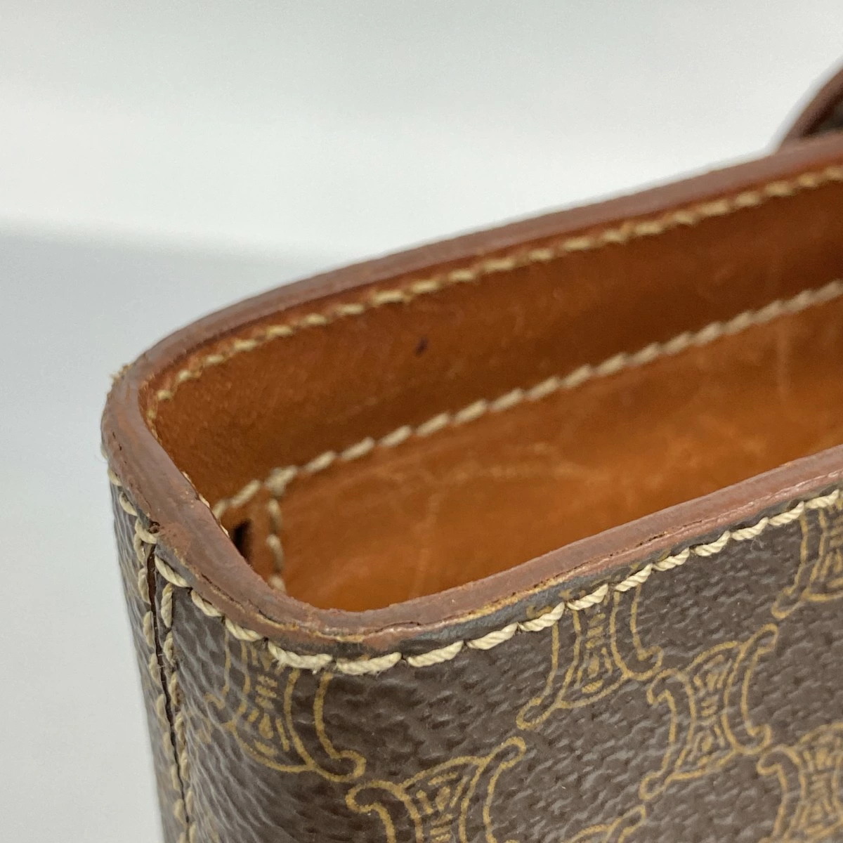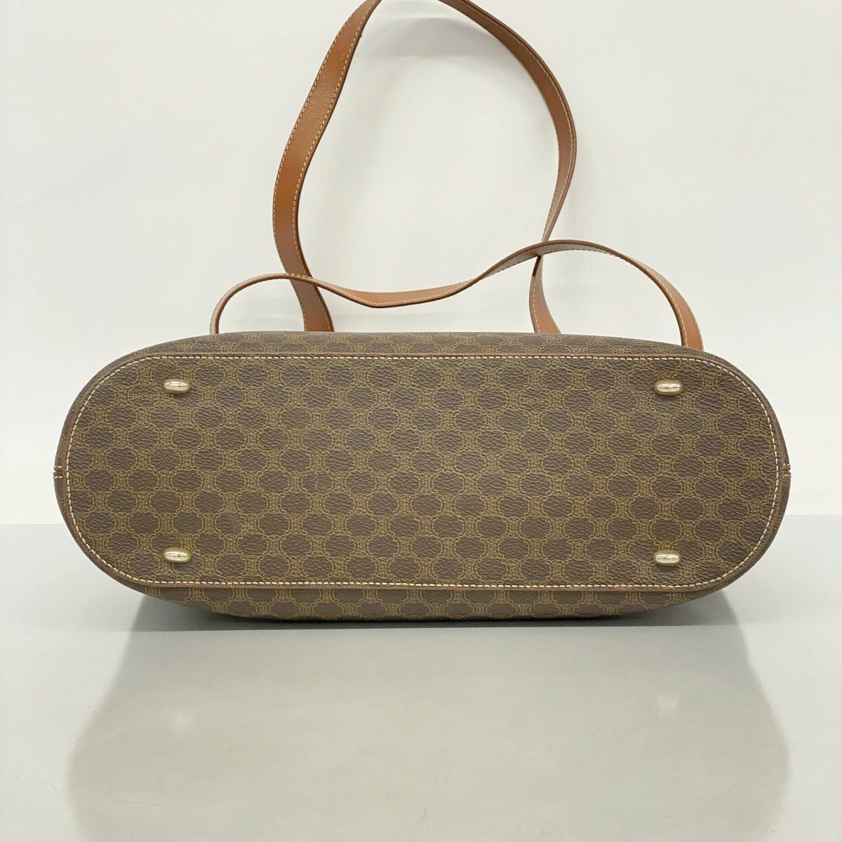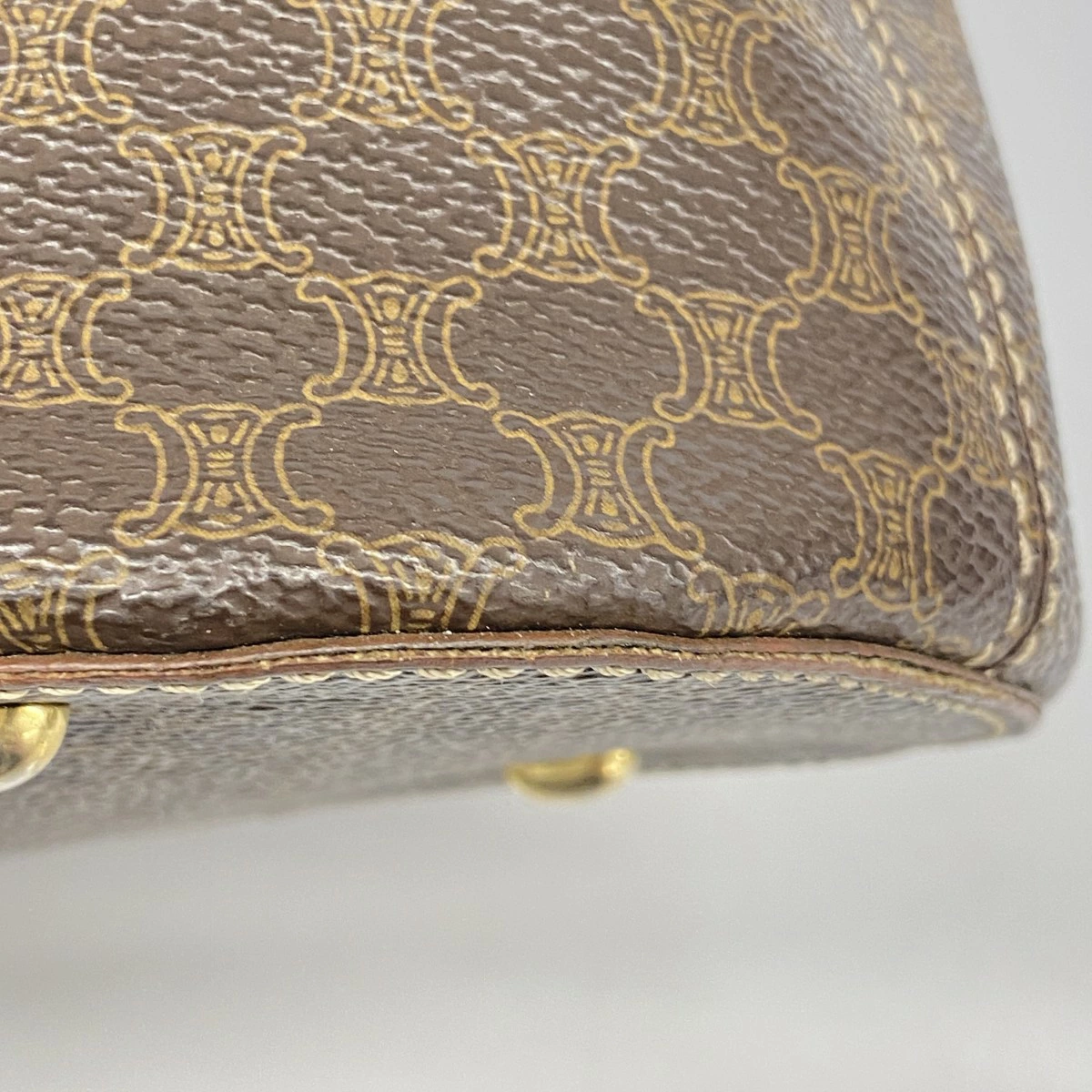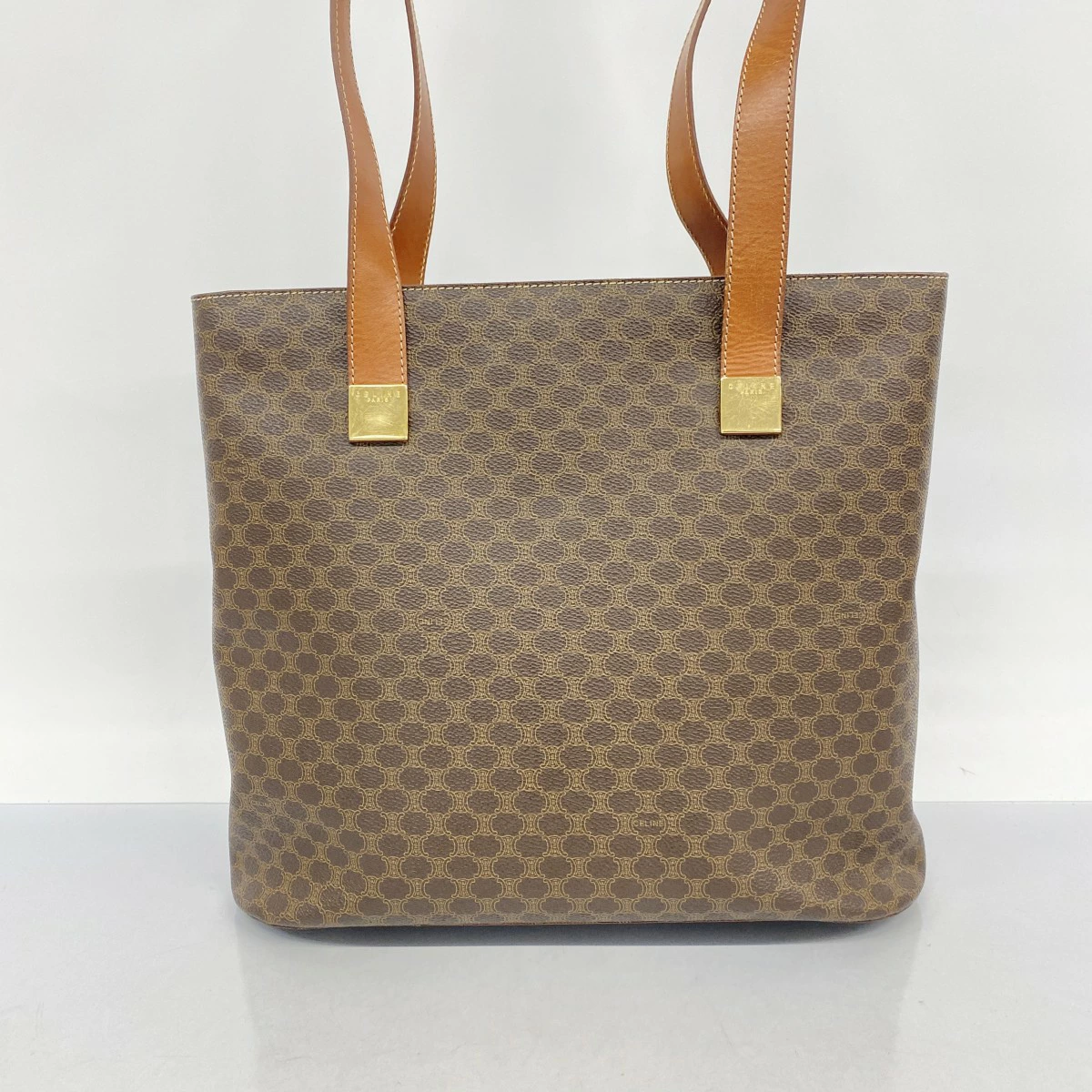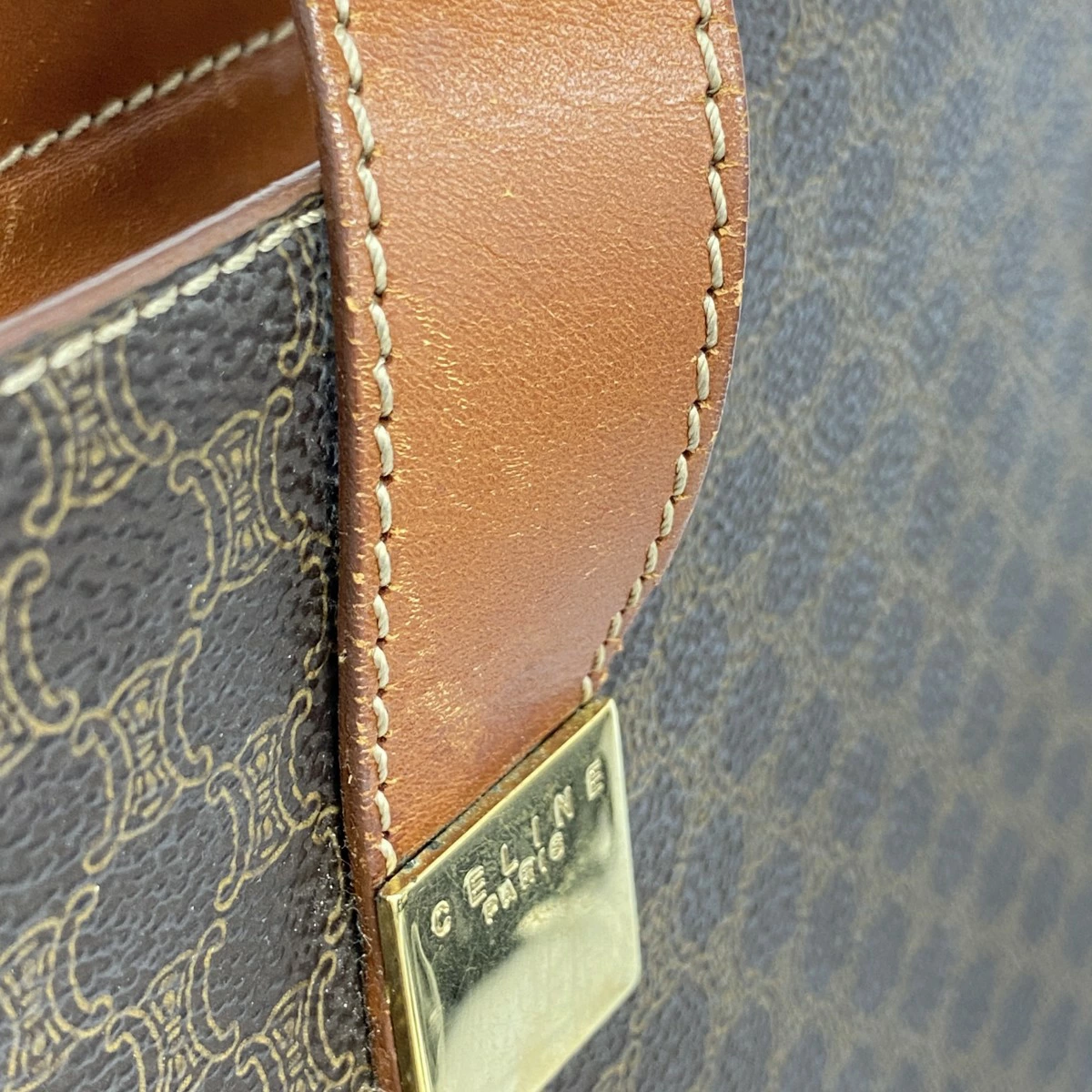 ★SALE【5mb2021-h】セリーヌ トートバッグ マカダム PVC ブラウン ゴールド金具【中古】レディース