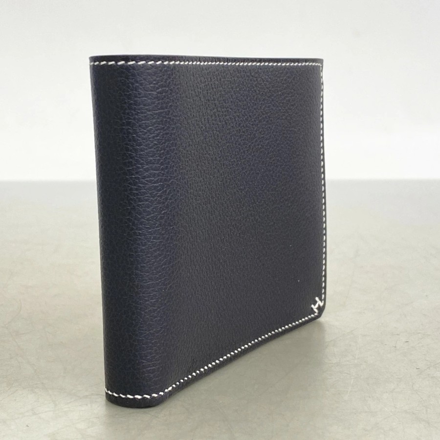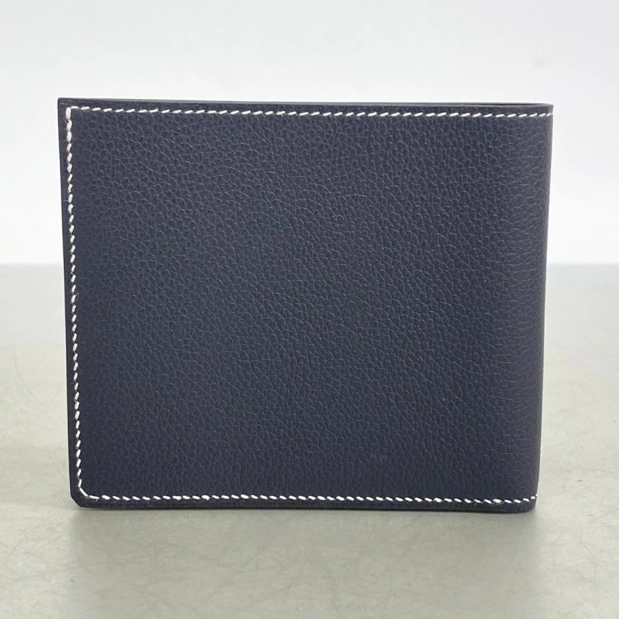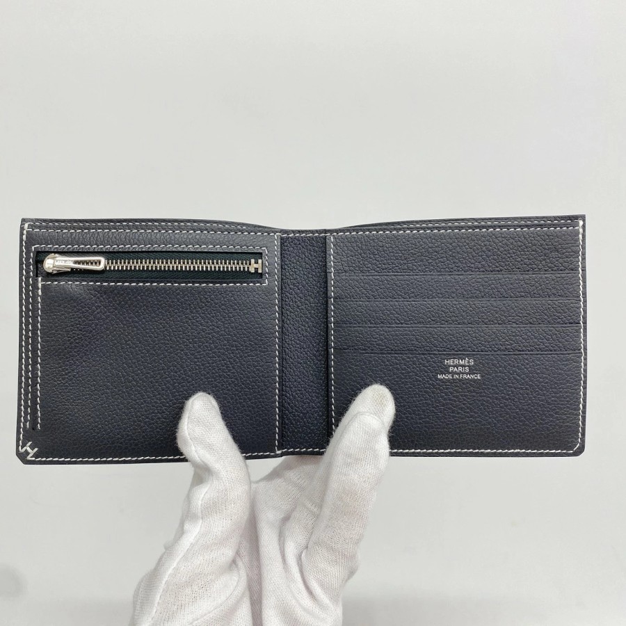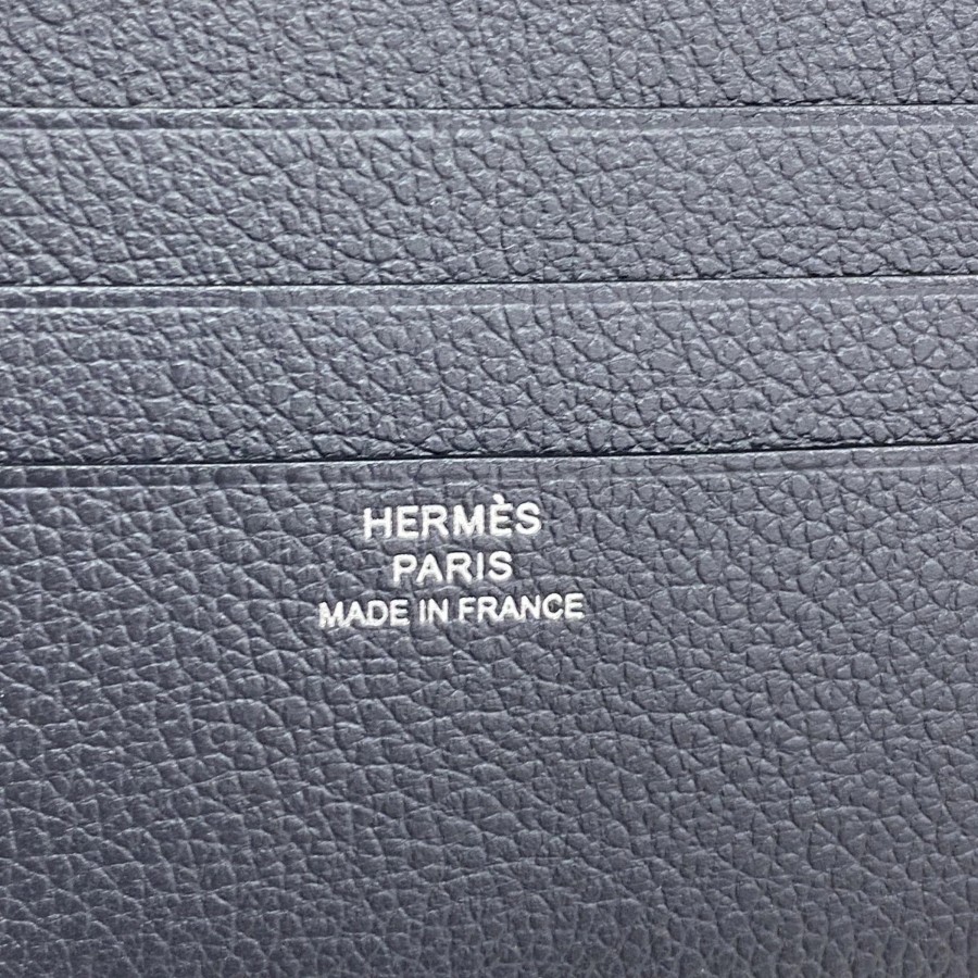 【6da0654】Hermes Wallet H Sellier Compact Evercolor Grim Misty Silver Hardware K Stamp【Used】Men's