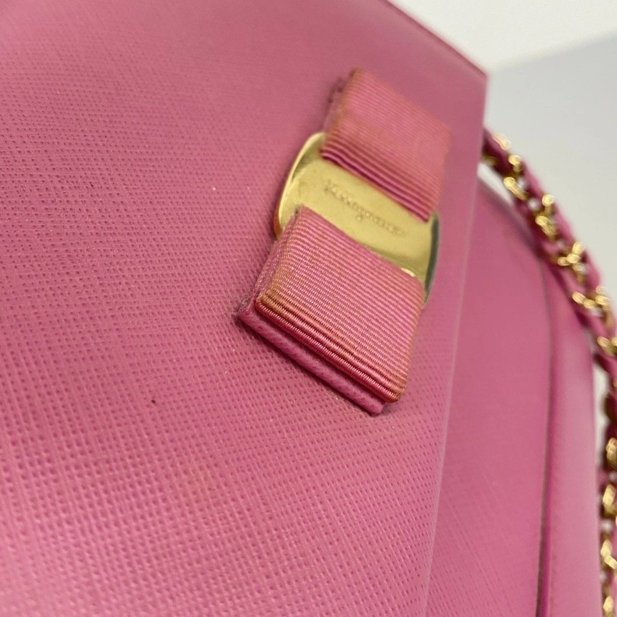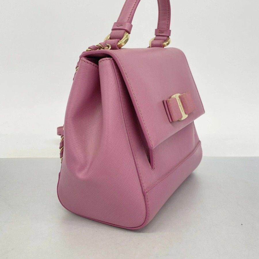 【6db0965】サルヴァトーレフェラガモ ハンドバッグ ヴァラ レザー ピンク ゴールド金具 2wayバッグ【中古】レディース