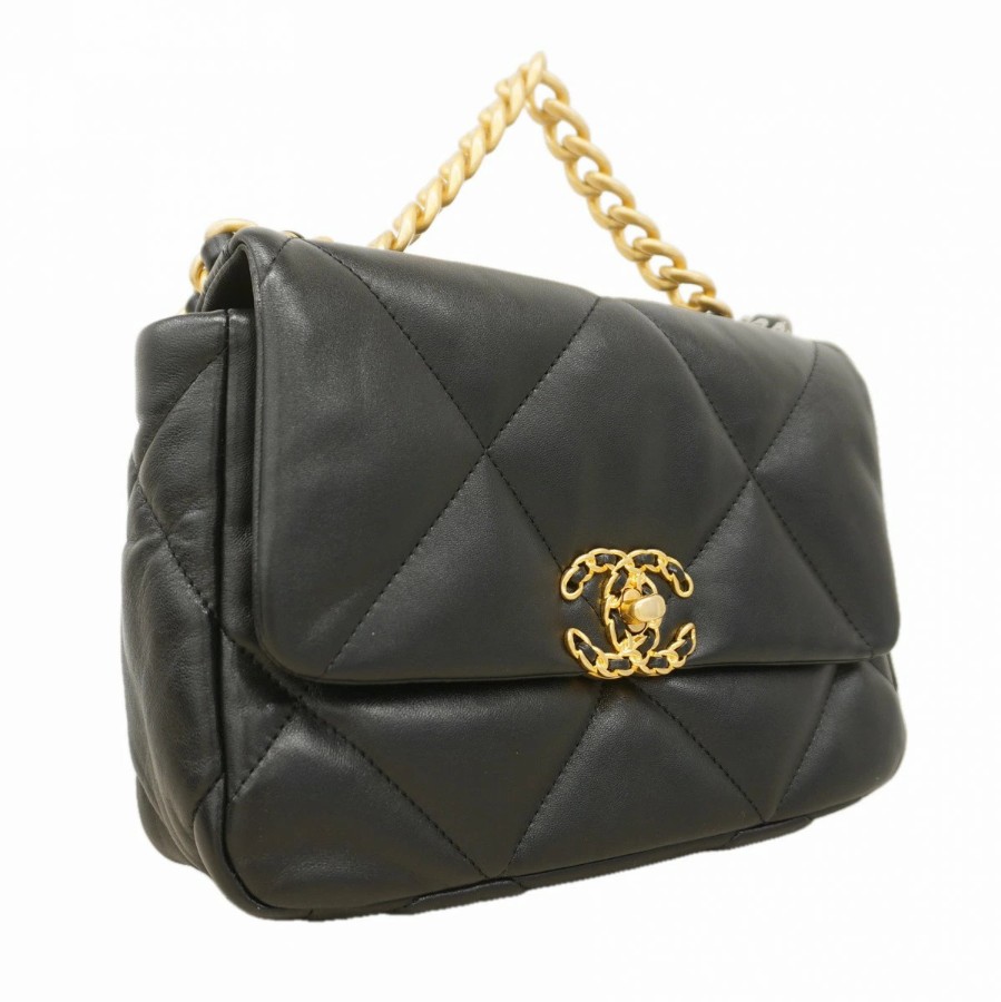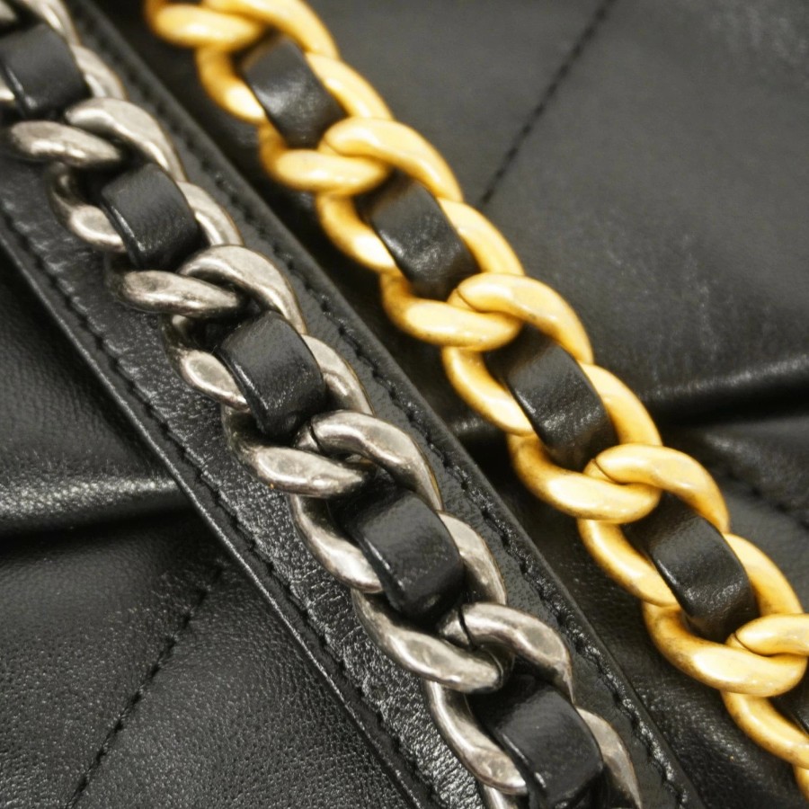 ★SALE【6db1020】シャネル ハンドバッグ チェーンショルダー シャネル19 ラムスキン ブラック ゴールド/シルバー金具 2wayバッグ【中古】レディース