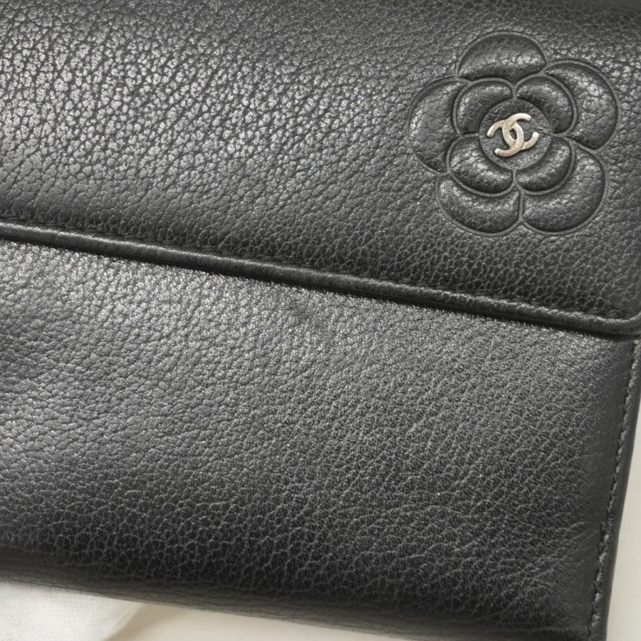 ★最終価格【6db1076-k】シャネル 長財布 カメリア レザー ブラック シルバー金具【中古】レディース