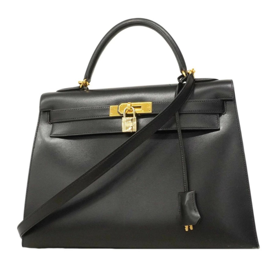 ★SALE【6db1576】エルメス ハンドバッグ ケリー32 ボックスカーフ ブラック ゴールド金具 ○Z刻印 2wayバッグ【中古】レディース
