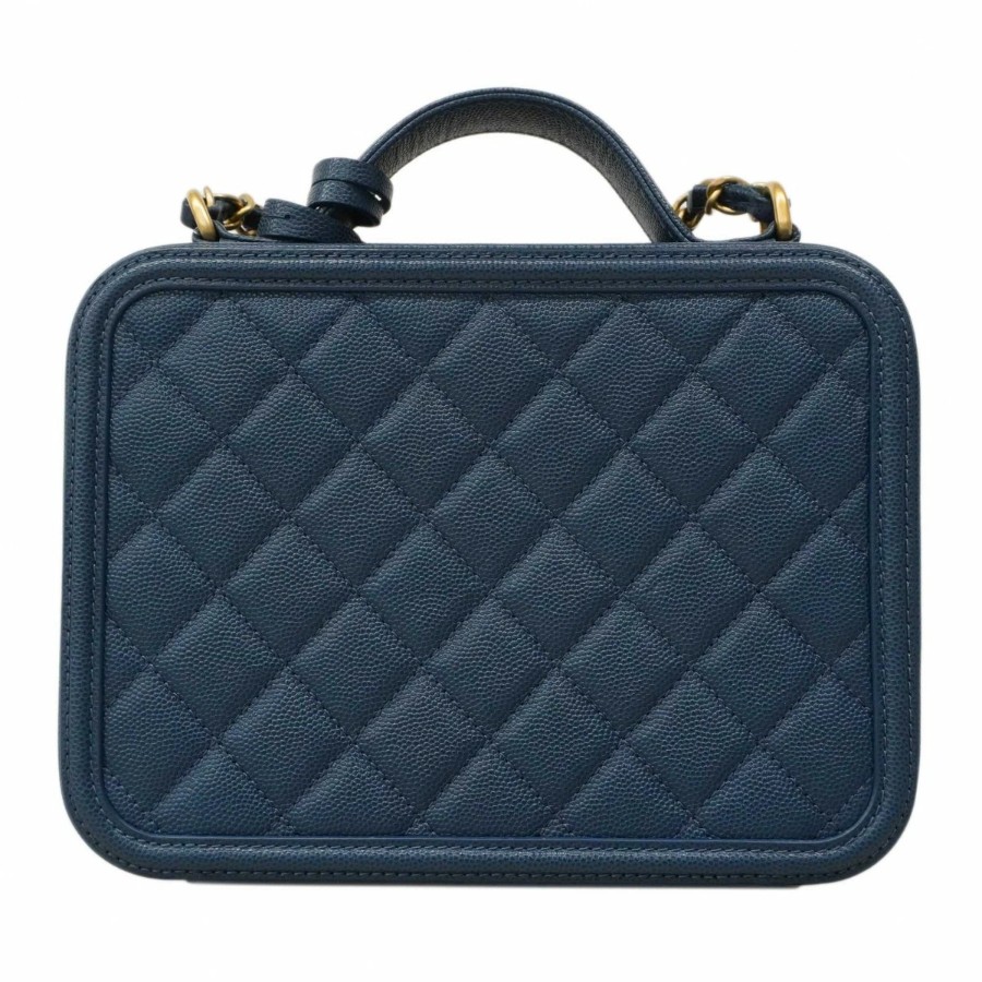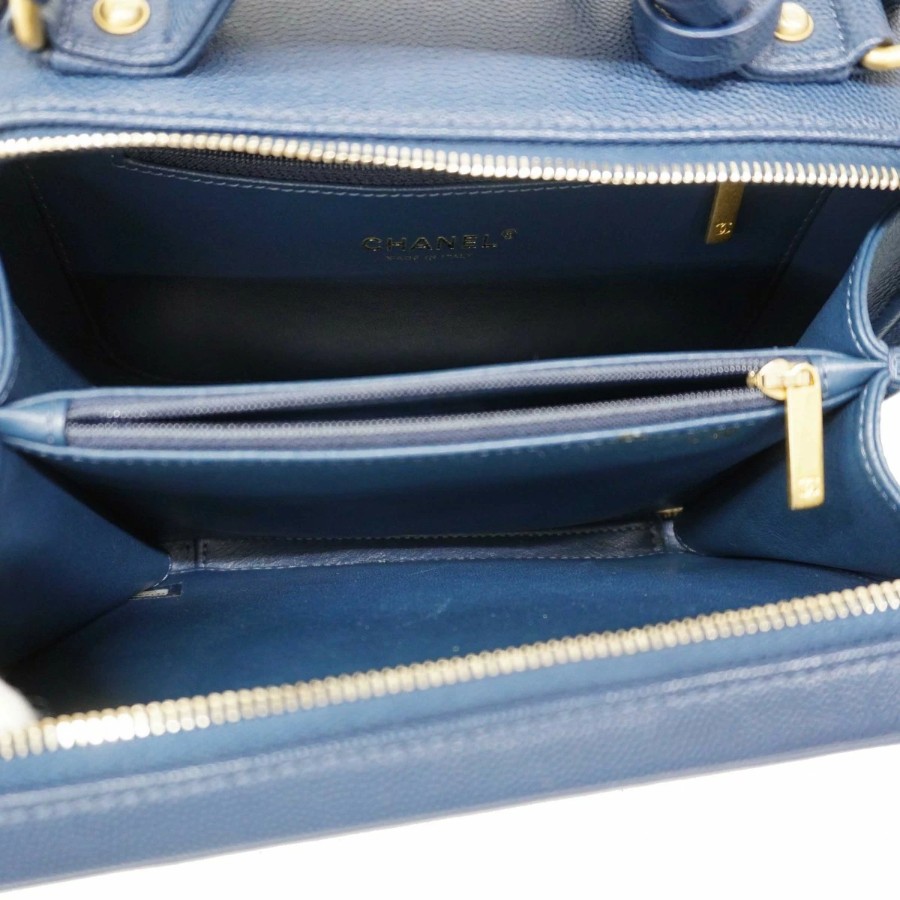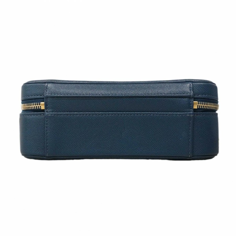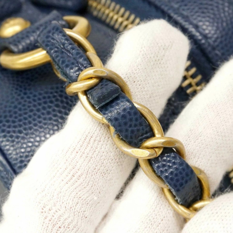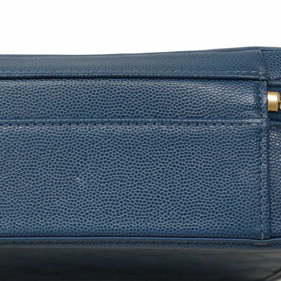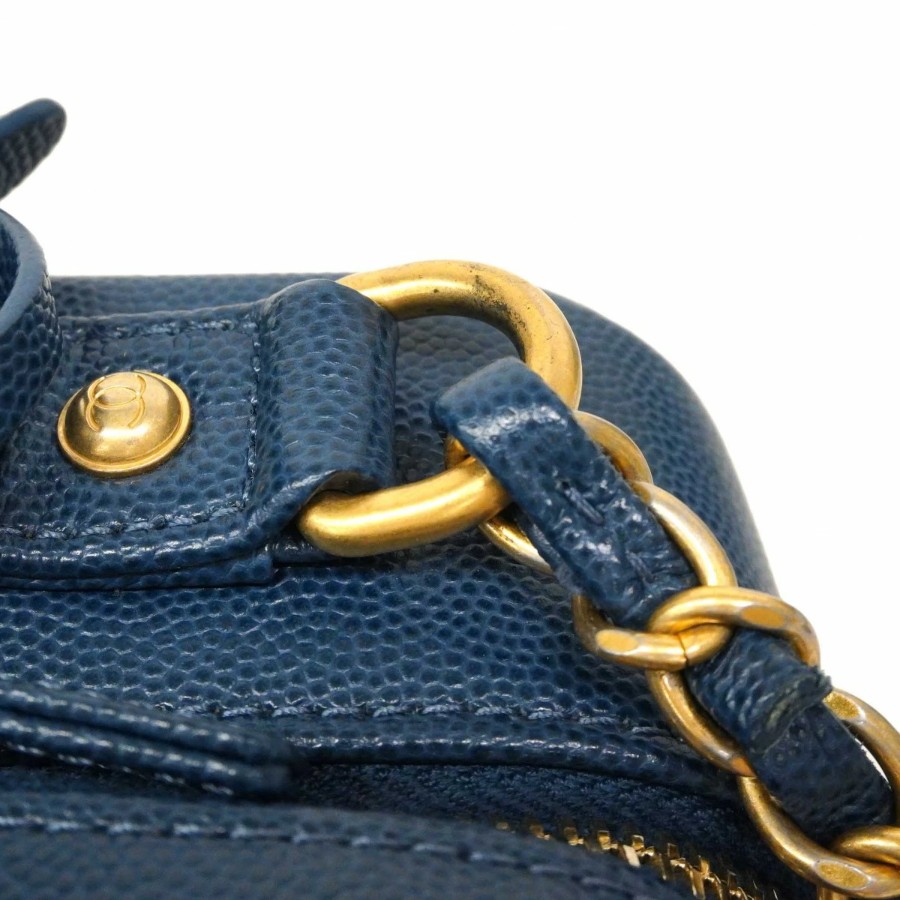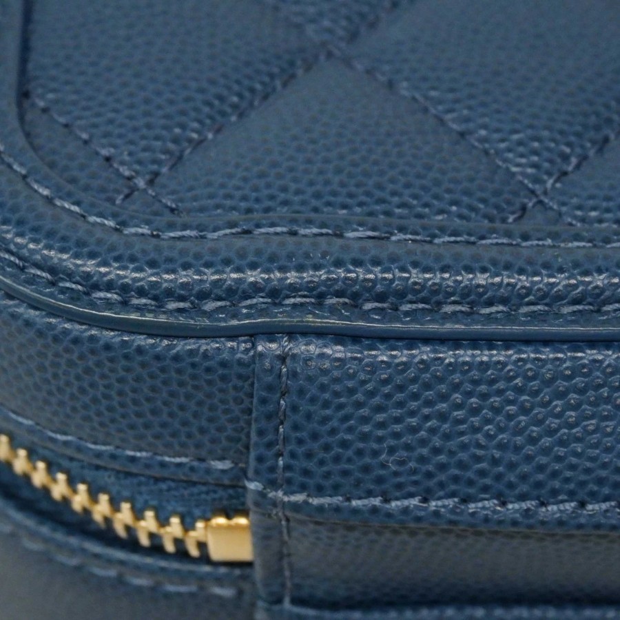 ★SALE【6db1630-k】シャネル バニティバッグ チェーンショルダー CCファリグリー キャビアスキン ブルー ゴールド金具【中古】レディース