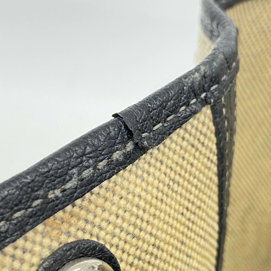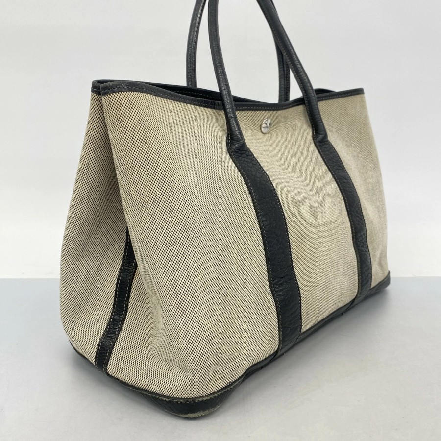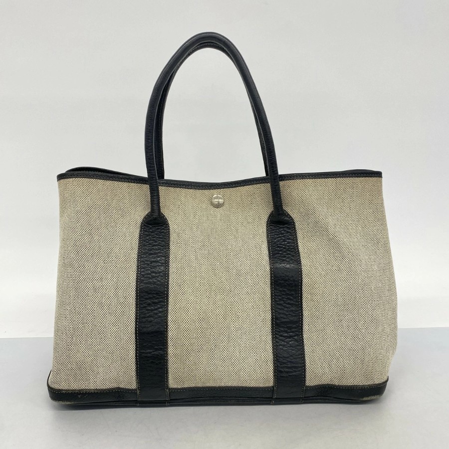 【6db1991】エルメス トートバッグ ガーデンパーティPM トワルアッシュ ブラック ベージュ シルバー金具 □H刻印【中古】レディース