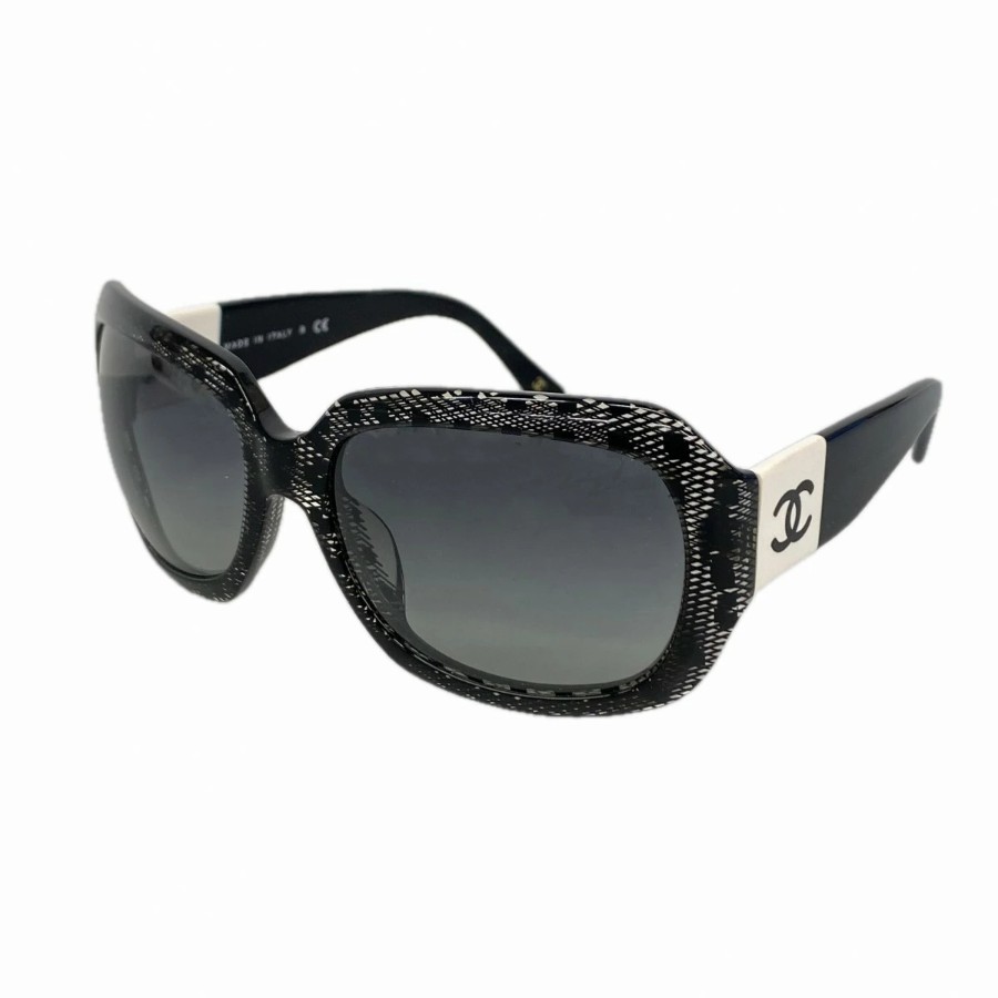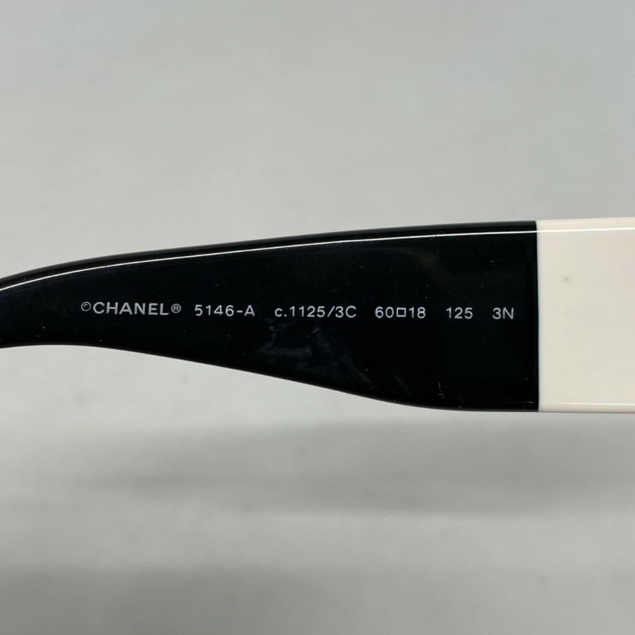 【6dc2401】シャネル サングラス 5146-A プラスチック ブラック ホワイト シルバー金具【中古】レディース