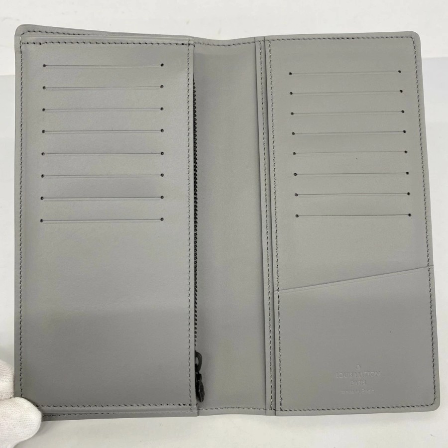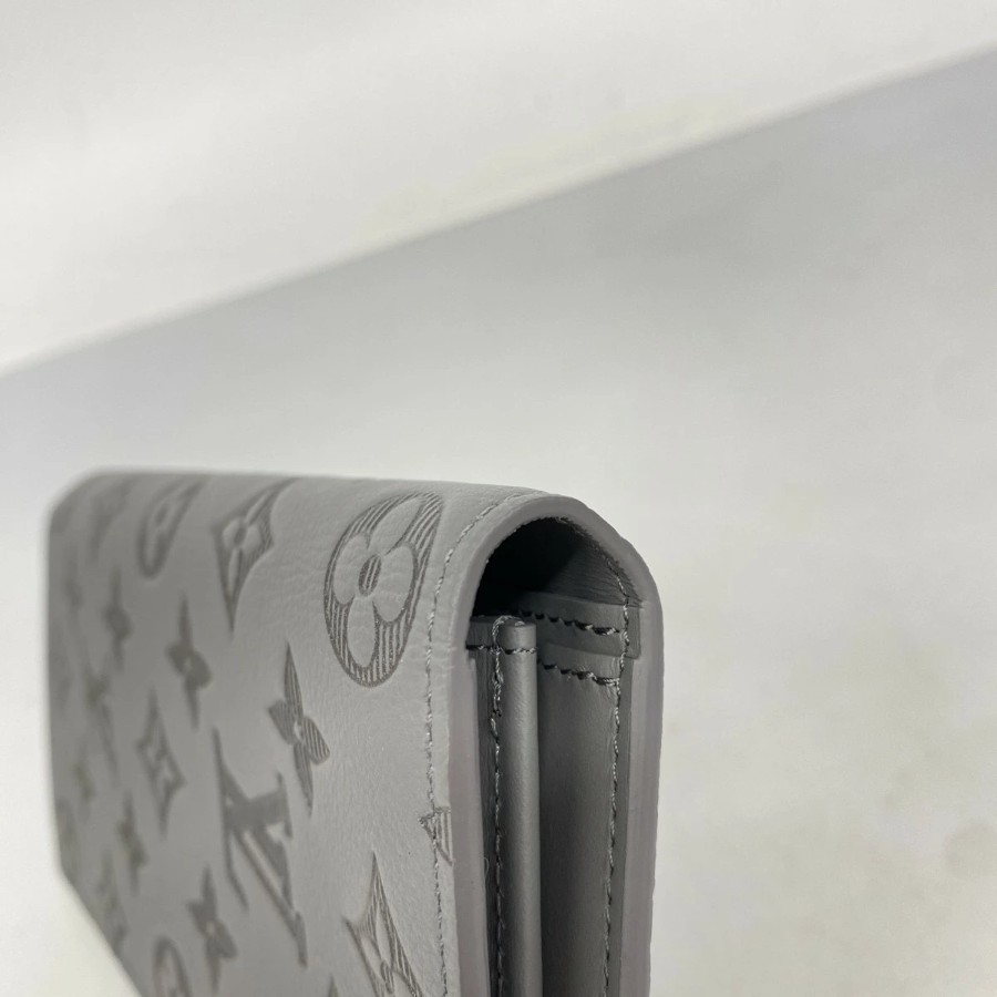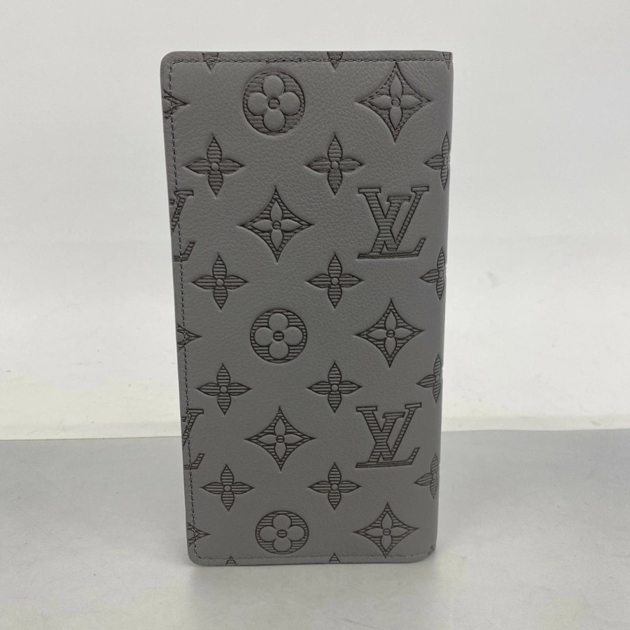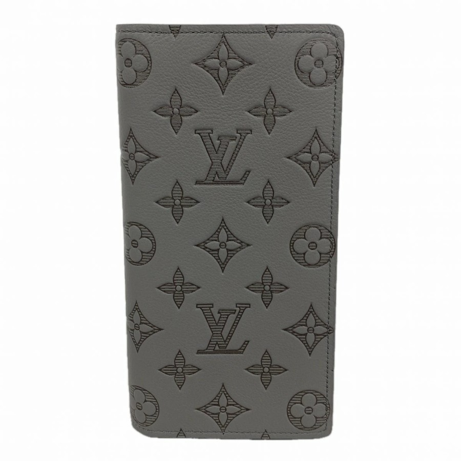 【6dc2465-k】Louis Vuitton Long Wallet Monogram Shadow Portefeuille Brazza M81335 Anthracite Gray【Used】Men's