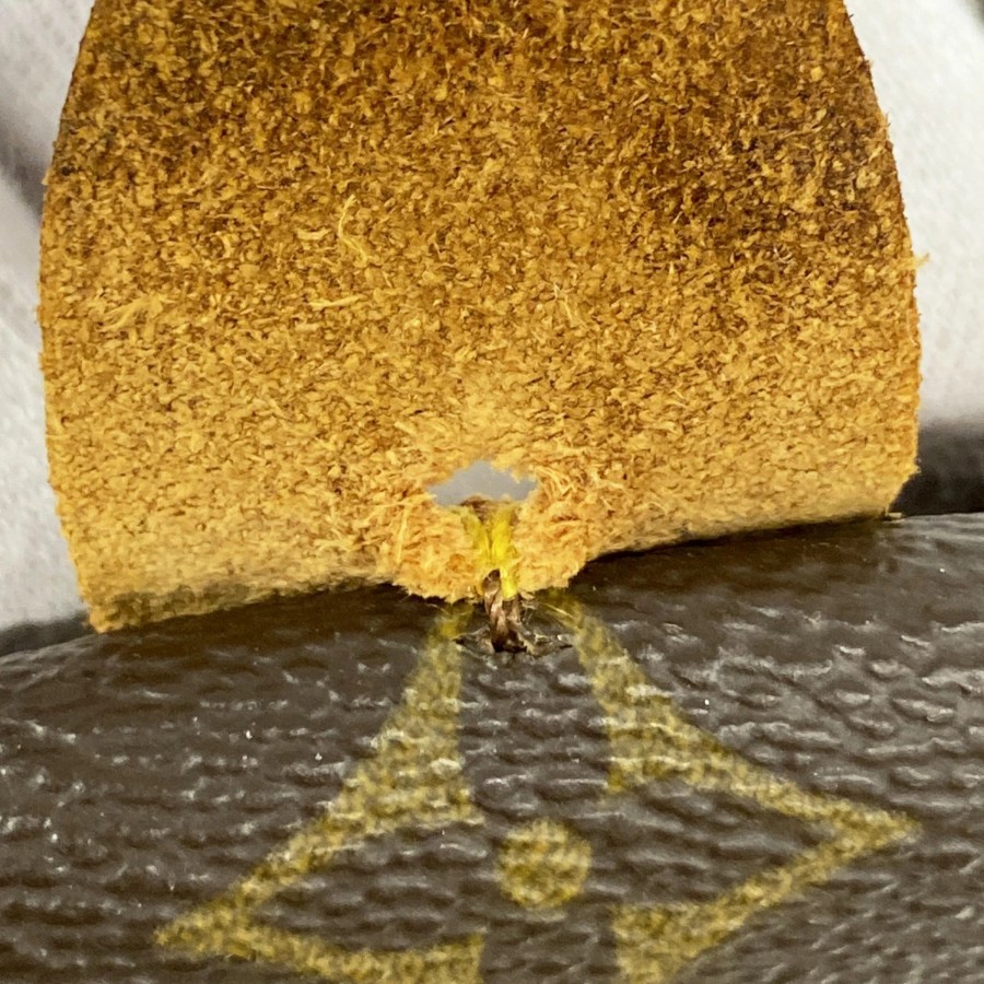 ロゴのヌメ革裏に破れがございます。