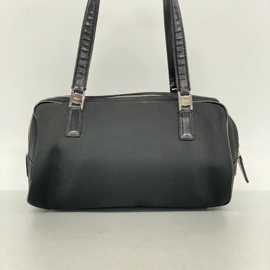 【6dc3255】サルヴァトーレフェラガモ ハンドバッグ ナイロン ブラック シルバー金具【中古】レディース