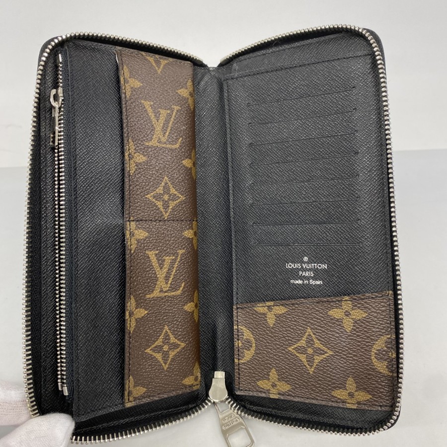【6dc3352-k】ルイヴィトン 長財布 モノグラム・マカサー ジッピーウォレットヴェルティカル M60109 ブラウン ブラック【中古】メンズ