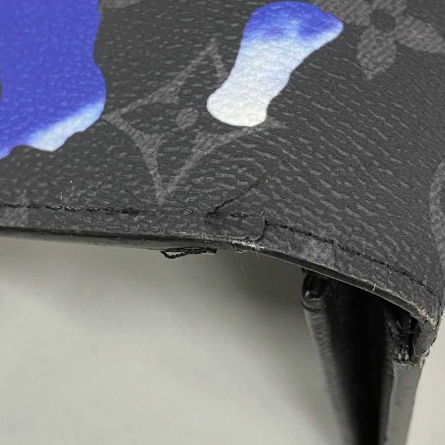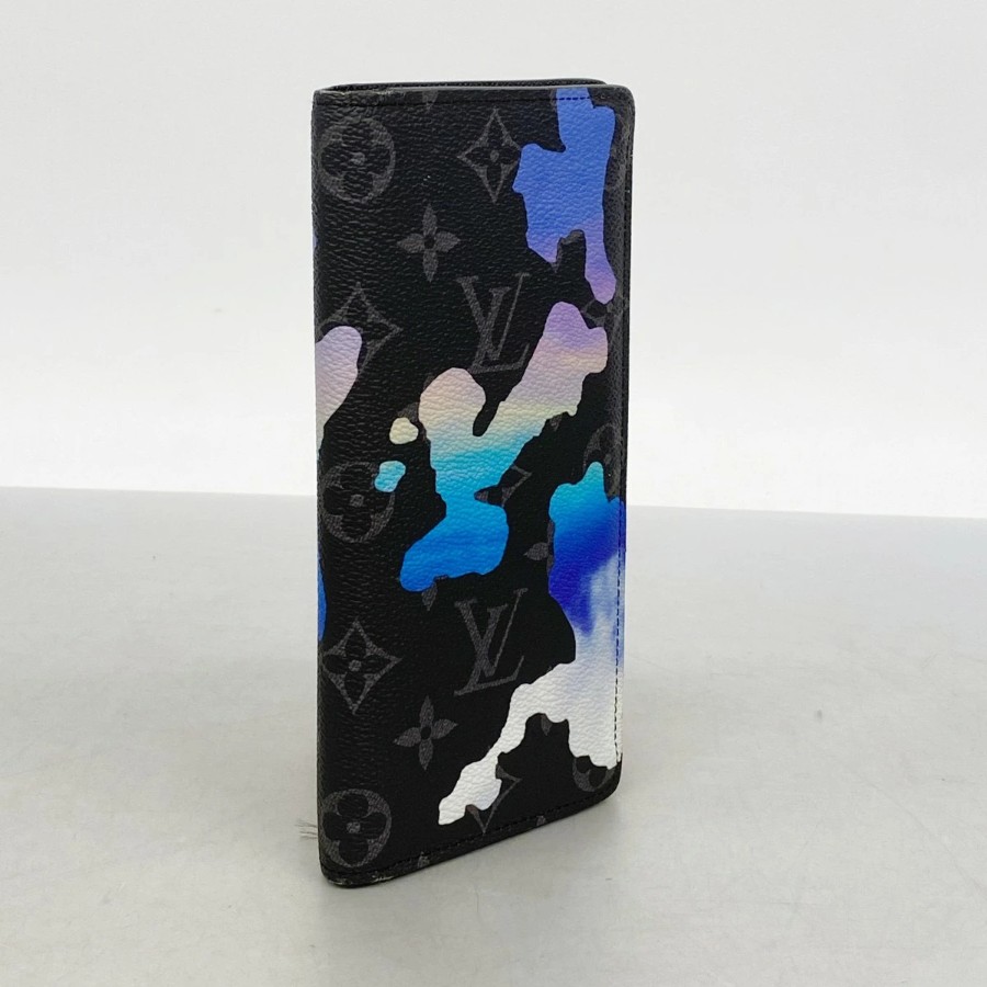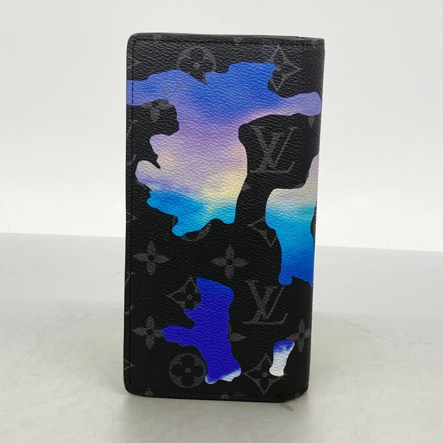 【6dc3376-k】ルイヴィトン 長財布 モノグラム・エクリプス ルームウィズアビュー ポルトフォイユブラザNM M81752 ブラック ブルー【中古】メンズ