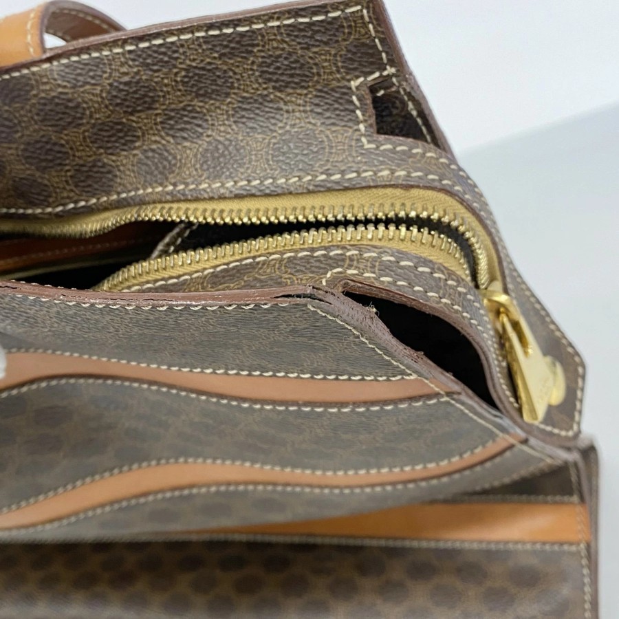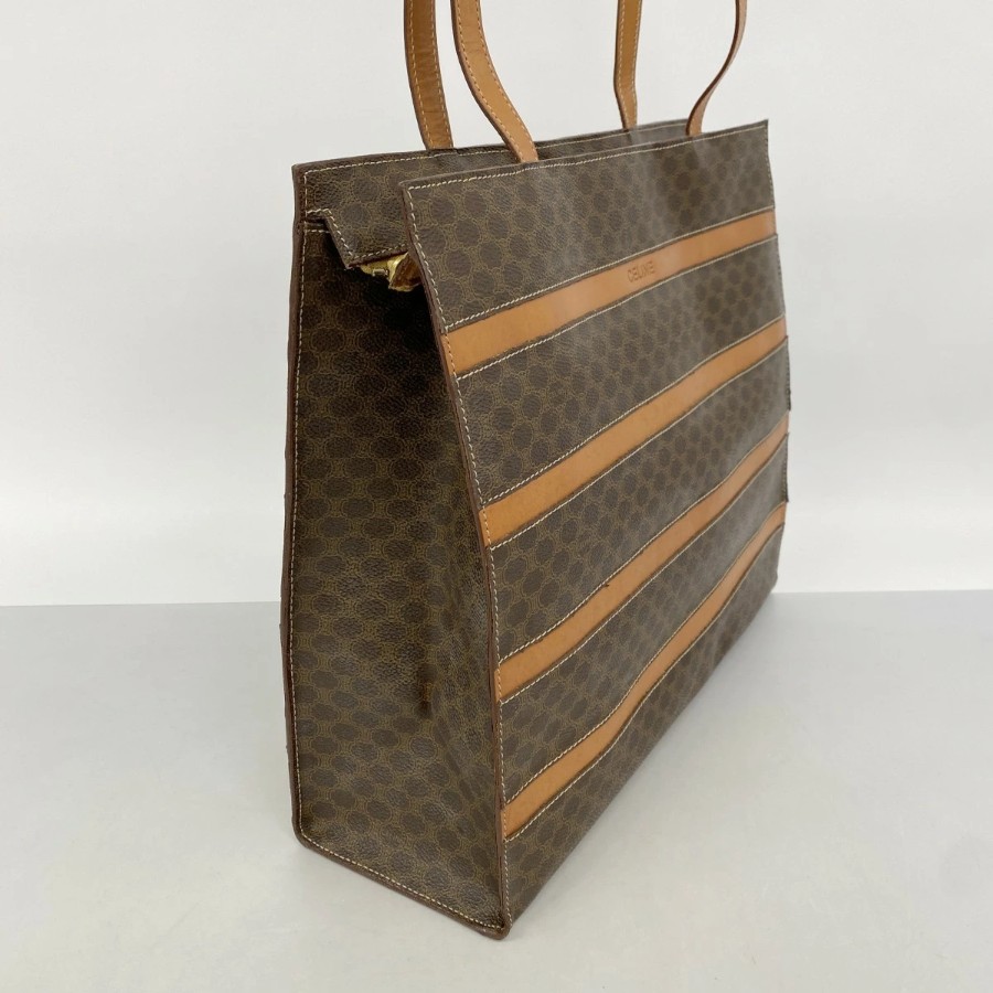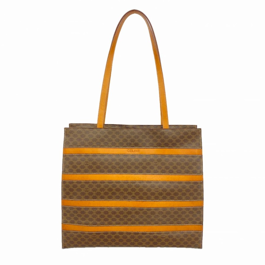 【6dc3491】セリーヌ トートバッグ マカダム PVC ブラウン ゴールド金具【中古】レディース
