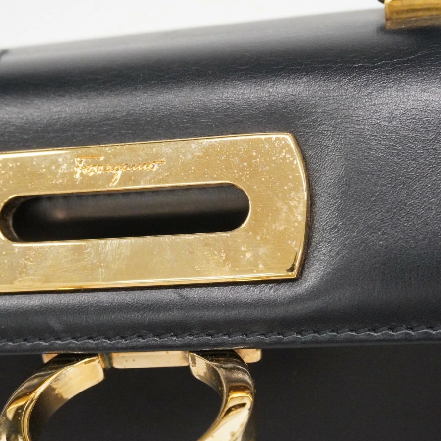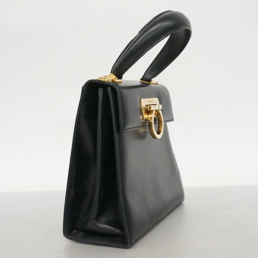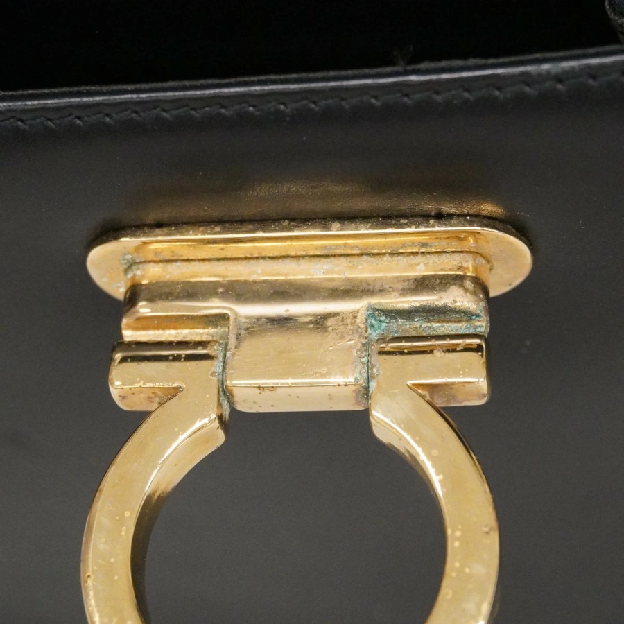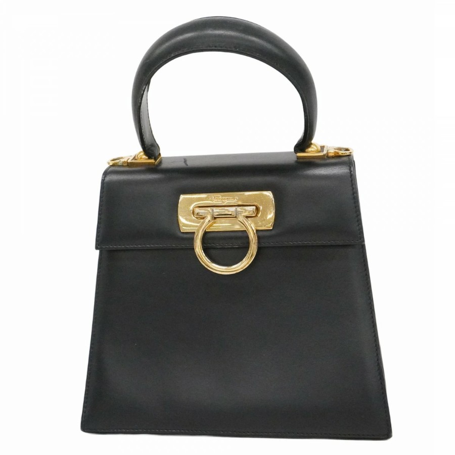 【6dc3725】サルヴァトーレフェラガモ ハンドバッグ ガンチーニ レザー ブラック ゴールド金具【中古】レディース
