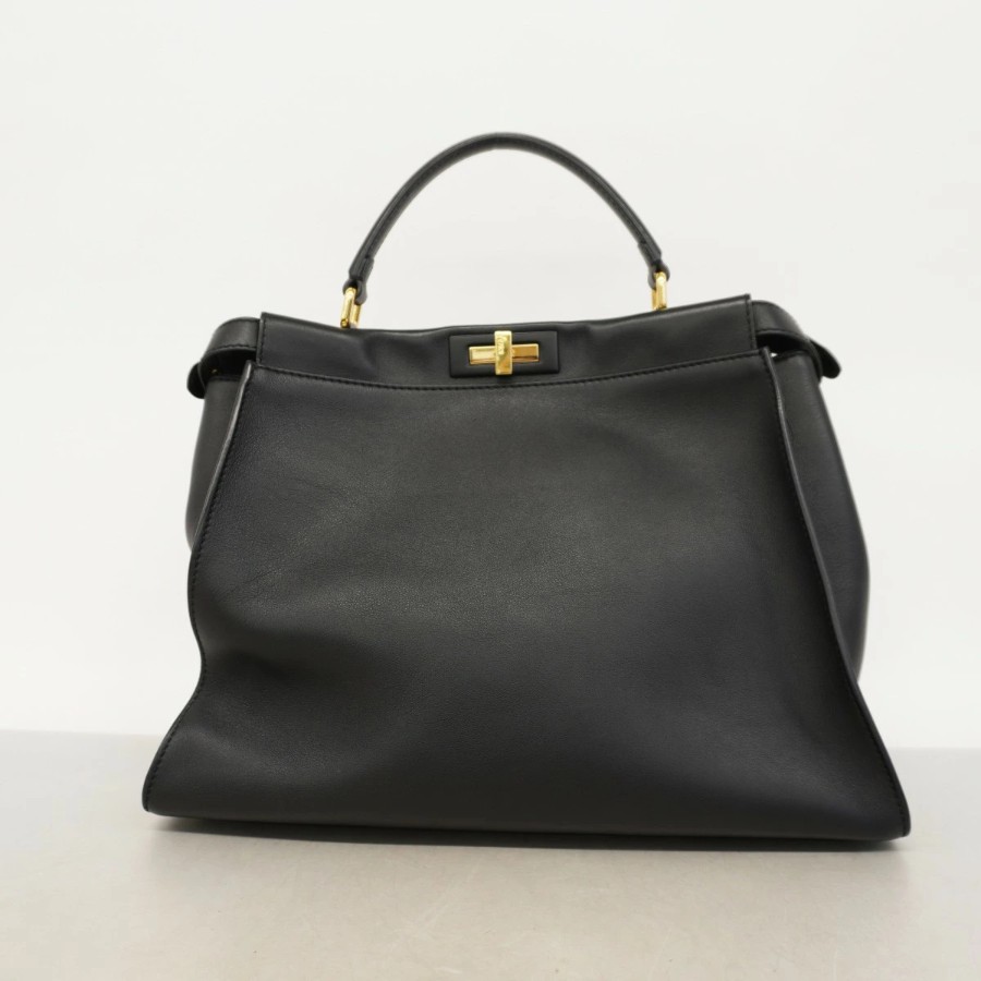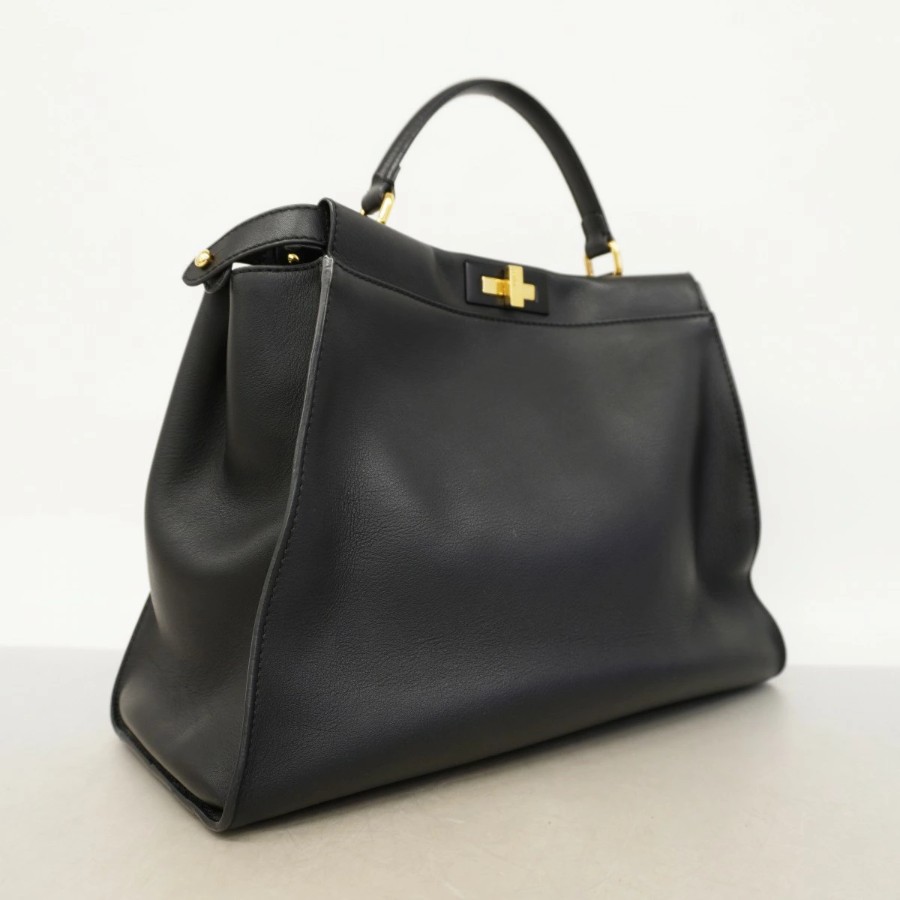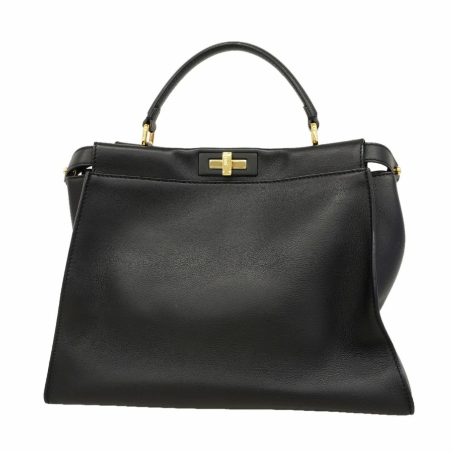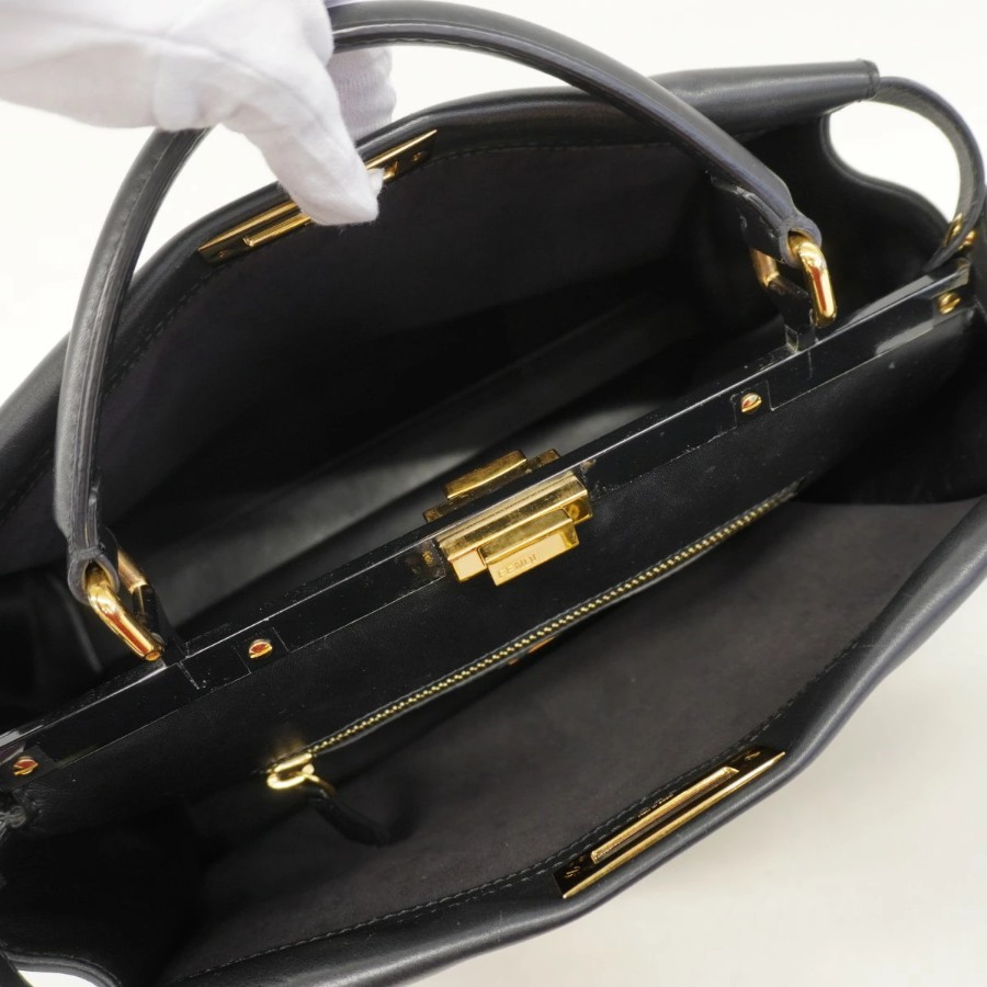 【6dc3798】フェンディ ハンドバッグ ピーカブー レザー ブラック ゴールド金具【中古】レディース