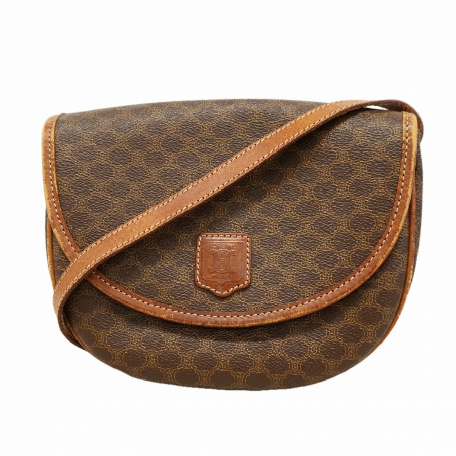 【6dc3831-k】セリーヌ ショルダーバッグ マカダム PVC ブラウン ゴールド金具【中古】レディース
