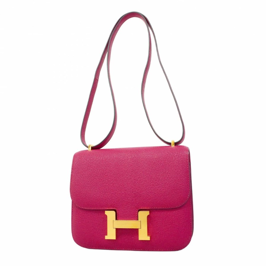 【6dd4054】エルメス ショルダーバッグ コンスタンス18 シェブルミゾル フランボアーズ ゴールド金具 Z刻印【中古】レディース