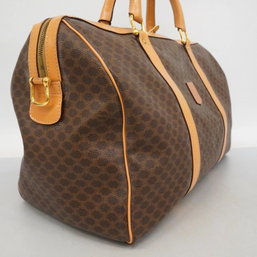 【6dd4072】セリーヌ ボストンバッグ マカダム PVC ブラウン ゴールド金具【中古】メンズ レディース ユニセックス
