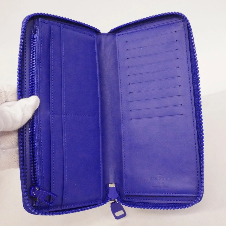 【6dd4418-k】Louis Vuitton Long Wallet Monogram Taurillon Zippy Wallet Vertical M80791 Neon Blue【Used】Men's