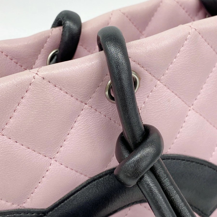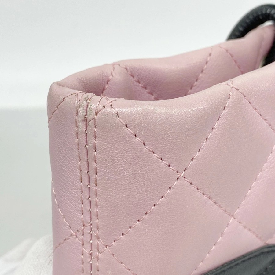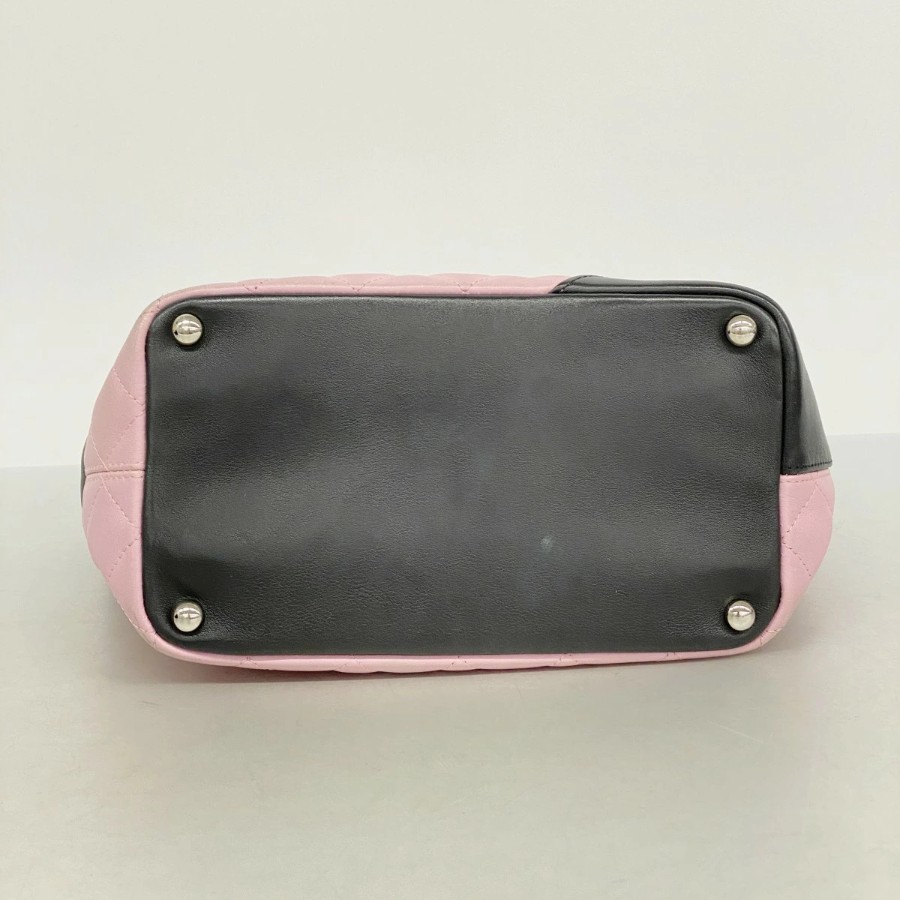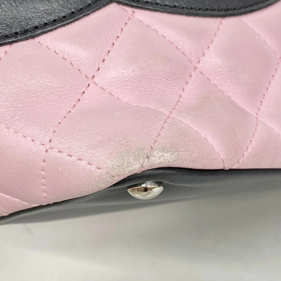【6dd4594-k】シャネル トートバッグ カンボン ラムスキン ピンク ブラック シルバー金具【中古】レディース