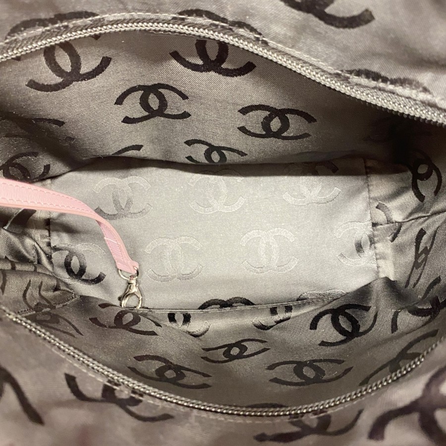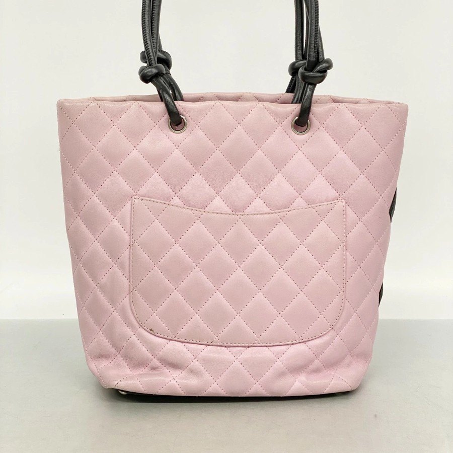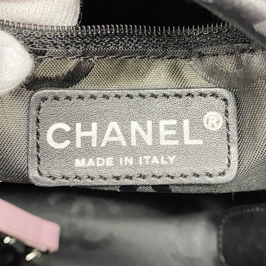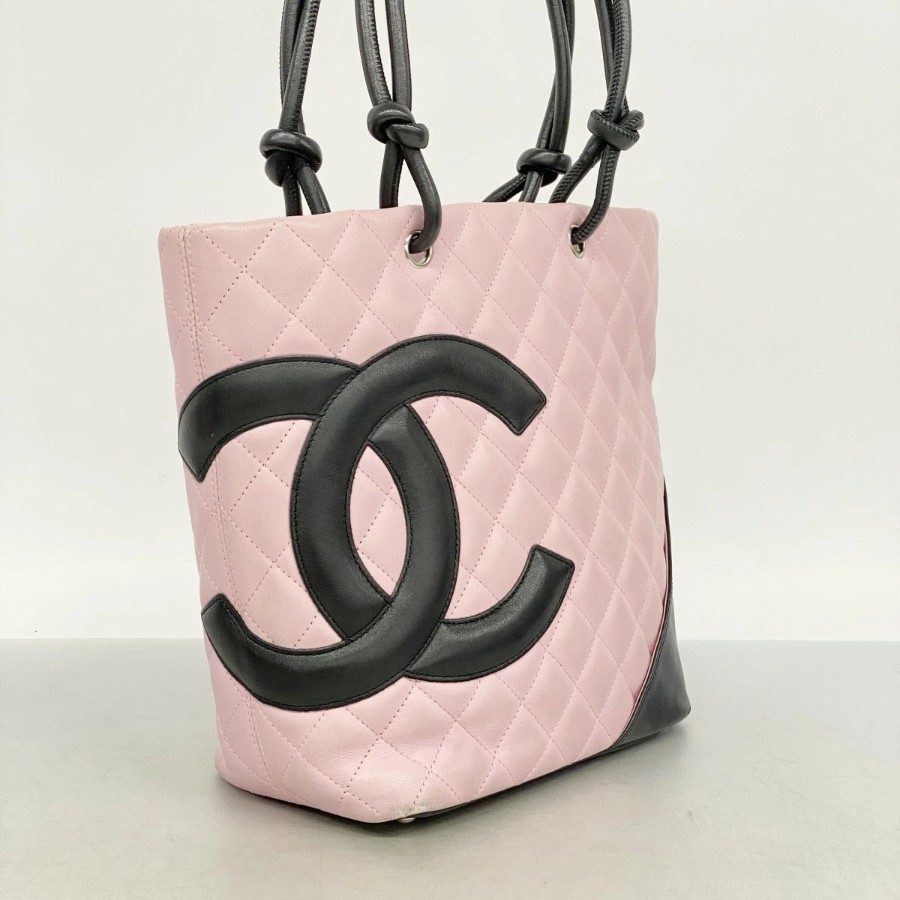【6dd4594-k】シャネル トートバッグ カンボン ラムスキン ピンク ブラック シルバー金具【中古】レディース