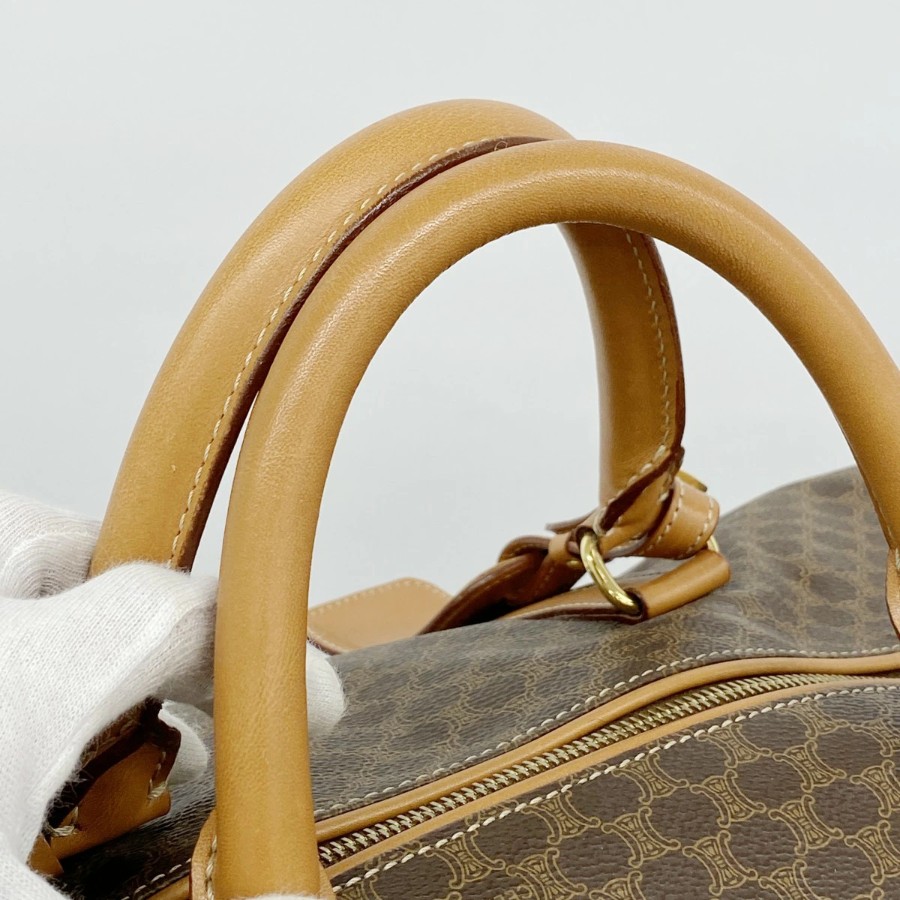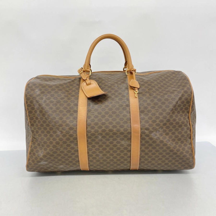 【6dd4762-k】セリーヌ ボストンバッグ マカダム PVC ブラウン ゴールド金具【中古】メンズ レディース ユニセックス